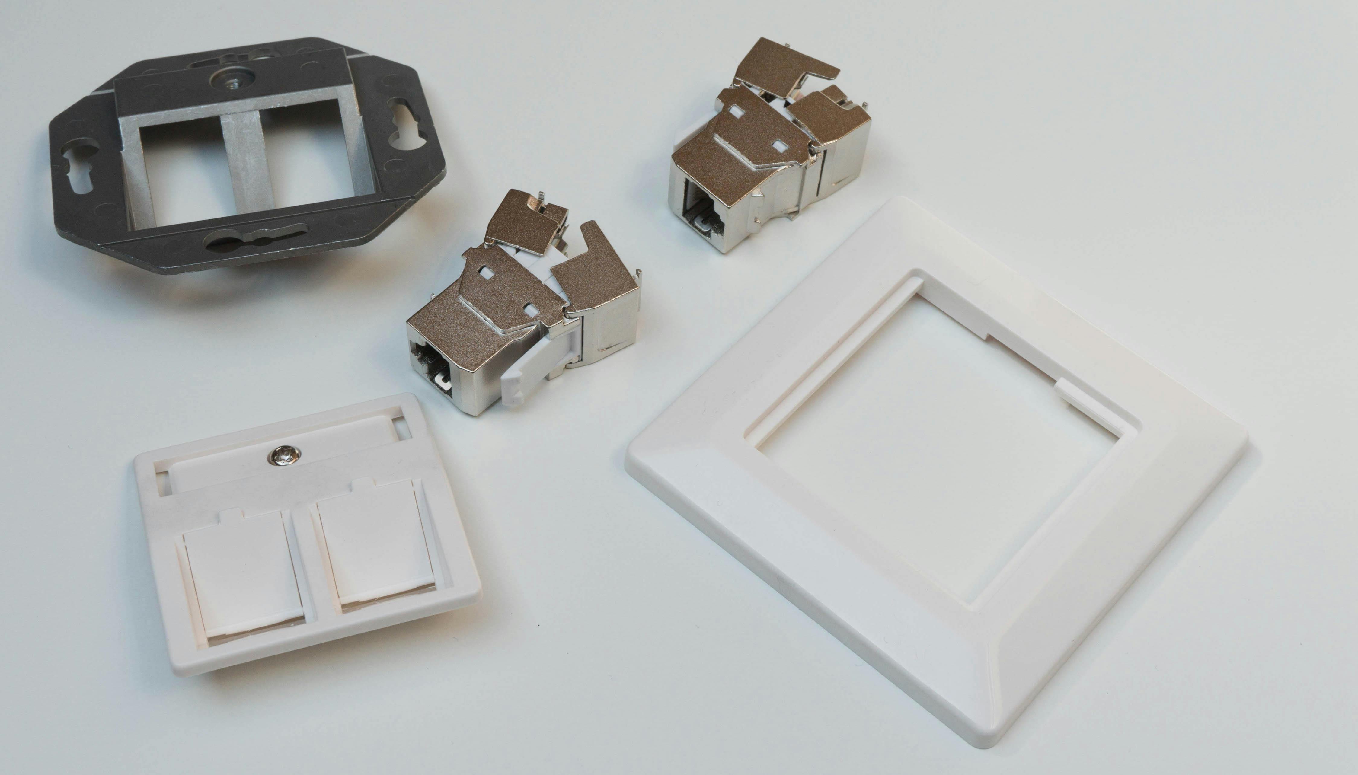 Bij het aanleggen van een thuisnetwerk leg je netwerkkabels met vaste kern naar alle ruimtes waar je een netwerkaansluiting wilt hebben. Je monteert de kabels af met wandcontactdozen. Deze zijn beschikbaar als inbouwvariant die in een inbouwdoos past of als opbouwvariant die je op de muur schroeft. Een complete wandcontactdoos heb je vanaf zo'n zes euro. Je kunt er ook voor kiezen om te werken met afdekramen en centraalplaten die hetzelfde zijn als de rest van je schakelmateriaal. Je hebt dan een binnenwerk nodig dat compatibel is met het schakelmateriaal.