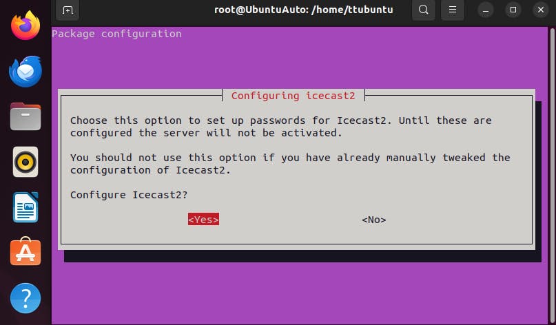 Meteen na de installatie kun je de configuratie van Icecast starten.