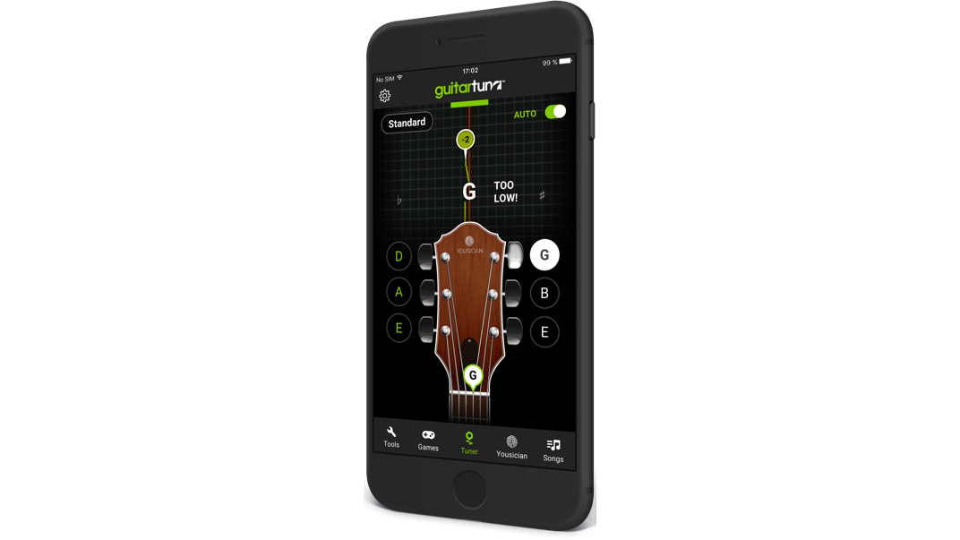 Een van de bekendste apps om muziekinstrumenten mee te stemmen is GuitarTuna. Je kunt niet alleen je gitaar snel en nauwkeurig afstellen, maar ook veertien andere instrumenten, denk aan een ukelele of bas. De dienst biedt ook een database met liedjes die je kunt spelen. Zoek je favoriete nummer op en je ziet alle akkoorden die je moet weten om het liedje zelf te spelen. Ben je een beginnend gitarist, dan vind je in GuitarTuna ook een bibliotheek met je allerlei akkoorden die je kunt afspelen Je hoort direct hoe ze moeten klinken. Ook zijn er meerdere spelletjes om akkoorden te leren.