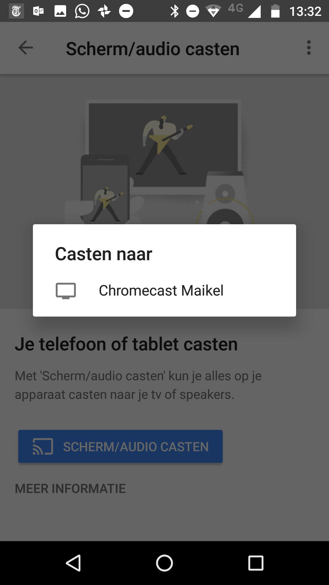 Je stuurt een Chromecast moeiteloos aan vanaf een iOS- of Android-toestel. Dat werkt vanuit beide besturingssystemen prima, al heeft Android wel een leuk extraatje voor je in petto. Zo kun je het volledige scherm van het mobiele toestel naar je televisie casten. Handig voor het geval een bepaalde app geen Chromecast-ondersteuning heeft ingebouwd. Open de app Google Home en vouw linksboven het instellingenmenu open. Je kiest daarna tweemaal voor Scherm/audio casten. Bedenk goed of je het Android-scherm staand of liggend wilt delen, al kun je dat tijdens de weergave ook nog wijzigen. Tik tot slot de naam van je Chromecast aan. Ondervind je problemen om het Android-scherm te delen? Mogelijk zijn dan niet de juiste microfoonrechten ingeschakeld. Open de instellingen van Android en ga naar Apps / Google Play-services / Machtigingen. Activeer de schakelaar achter Microfoon.