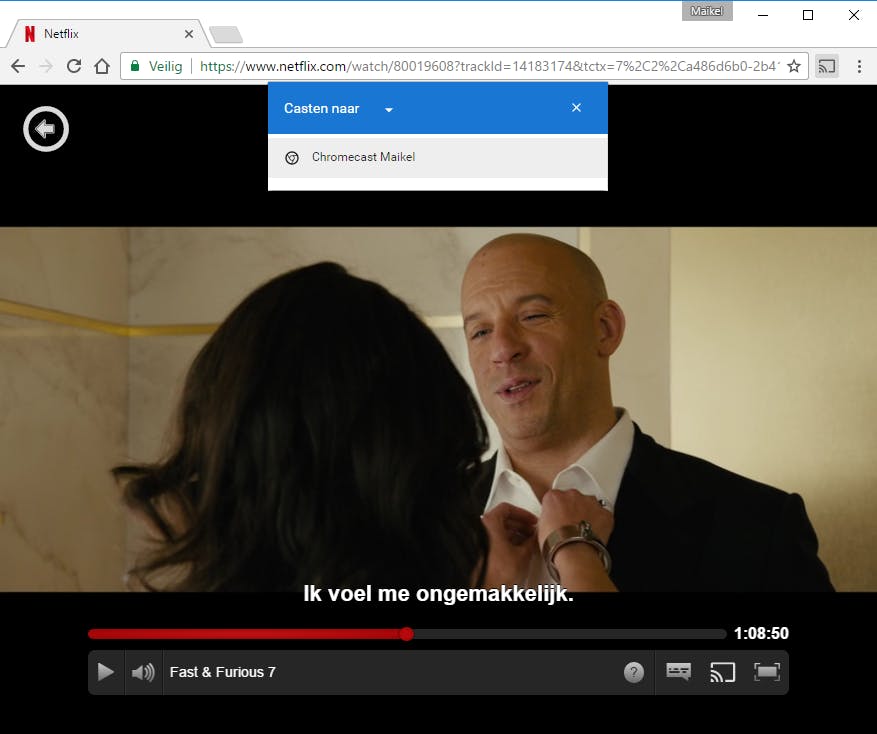 Je Chromecast werkt niet uitsluitend samen met je smartphone of tablet, want je kunt het apparaatje ook vanaf je computer aansturen. Allerlei websites hebben zelfs Chromecast-ondersteuning ingebouwd, zodat je rechtstreeks webvideo’s kunt casten. Hiervoor heb je wel Chrome nodig. Open Netflix of YouTube in deze browser en zoek een leuke video, film of serie op. Klik tijdens het afspelen op het cast-pictogram, waarna je de naam van de Chromecast aanklikt. Merk op dat er rechtsboven binnen Chrome een nieuw pictogram opduikt. Klik daarop om het volume aan te passen of de videoweergave te beëindigen. Andere websites met Chromecast-ondersteuning zijn onder meer Dailymotion, Google Play Movies en Facebook.