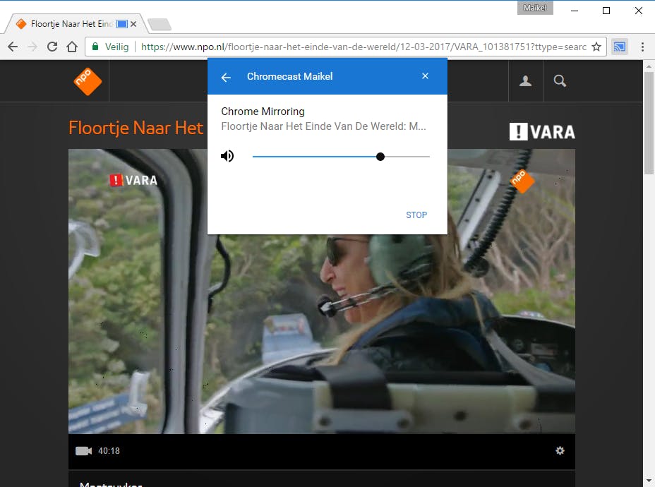 Als een website geen Chromecast-ondersteuning biedt, is er nog geen man overboord. Je kunt namelijk een volledig Chrome-tabblad casten. Op die manier geef je de Chromecast vanaf de pc bijvoorbeeld het verzoek om een aflevering van NPO Gemist op te halen.