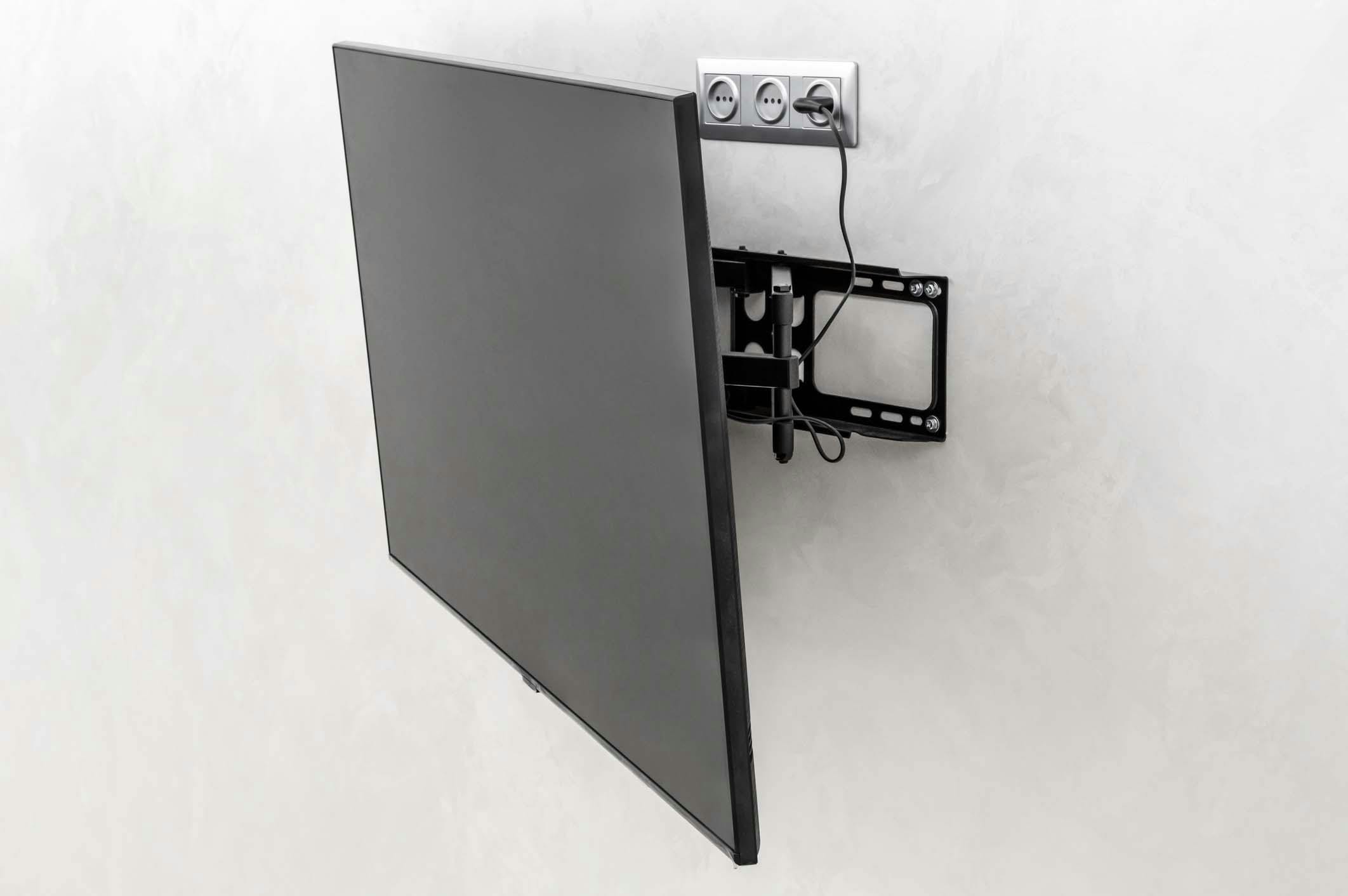 Nagenoeg alle tv’s hebben aan de achterzijde vier schroefgaten, meestal in een vierkant patroon. De opstelling en het type schroeven zijn gestandaardiseerd onder de naam VESA Mounting Interface Standard (VESA MIS), al zijn er wel verschillende varianten. Let dus op dat je wandbeugel dezelfde VESA MIS-standaard ondersteunt als je tv. De schermmaat en het gewicht van je tv moeten binnen de toegelaten grenzen voor de beugel vallen. Zorg voor een stevige verankering in de muur, zeker als de beugel toelaat de tv ver uit te zwenken. En denk op voorhand na hoe je alle bekabeling gaat wegwerken – dat oogt een stuk beter.
