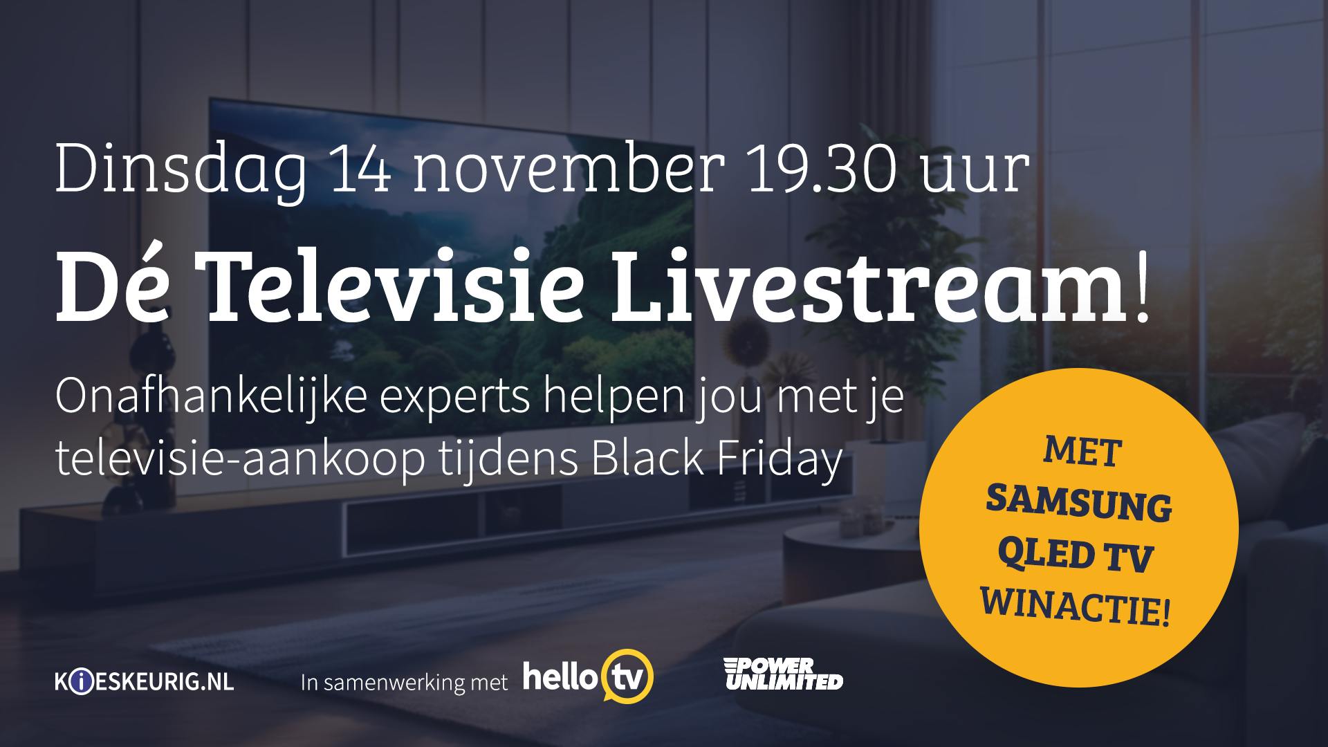 Ben jij van plan om komende Black Friday een nieuwe televisie voor een interessante prijs te scoren, maar weet je niet precies waar je op moet letten bij het kiezen? Dan is onze gratis livestream op dinsdag 14 november echt iets voor jou!