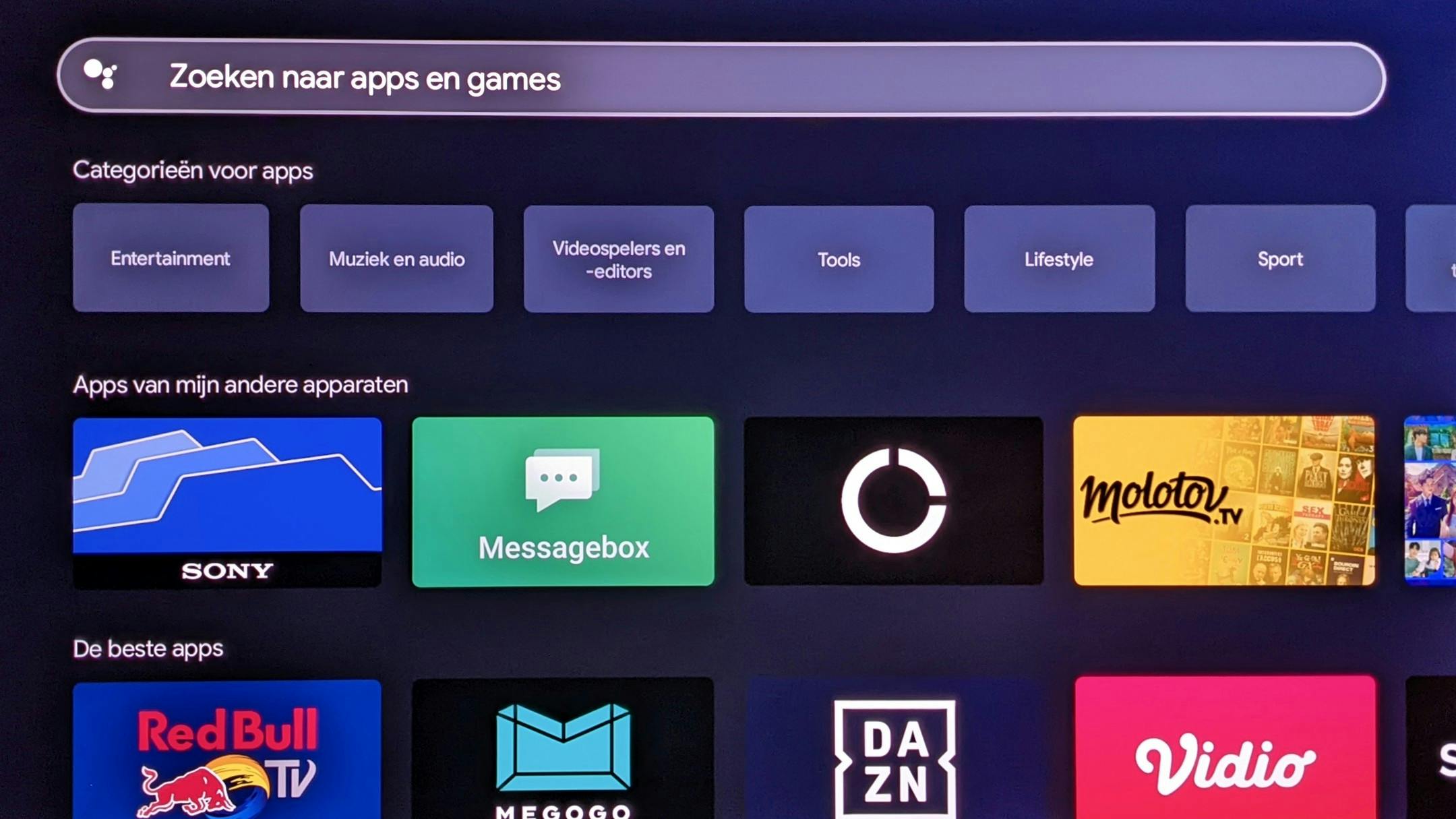 Als Android TV en Google TV ergens mee kunnen uitpakken, dan is het wel met het immense app-aanbod, want zowel internationale als nationale diensten zijn uitgebreid vertegenwoordigd. Met Netflix, Amazon Prime Video, Disney+, Apple TV, HBO Max, Viaplay (Formule 1), NPO Start, Pathé Thuis, Videoland, KIJK, RTL XL, NLziet, Ziggo Go, KPN iTV / KPN Smart TV, Streamz, VTM Go, VRT NU en Telenet Flow heb je zeker keuze genoeg. En dan zijn er nog talloze andere. Om een app te installeren, heb je een account nodig voor de Google Play Store.