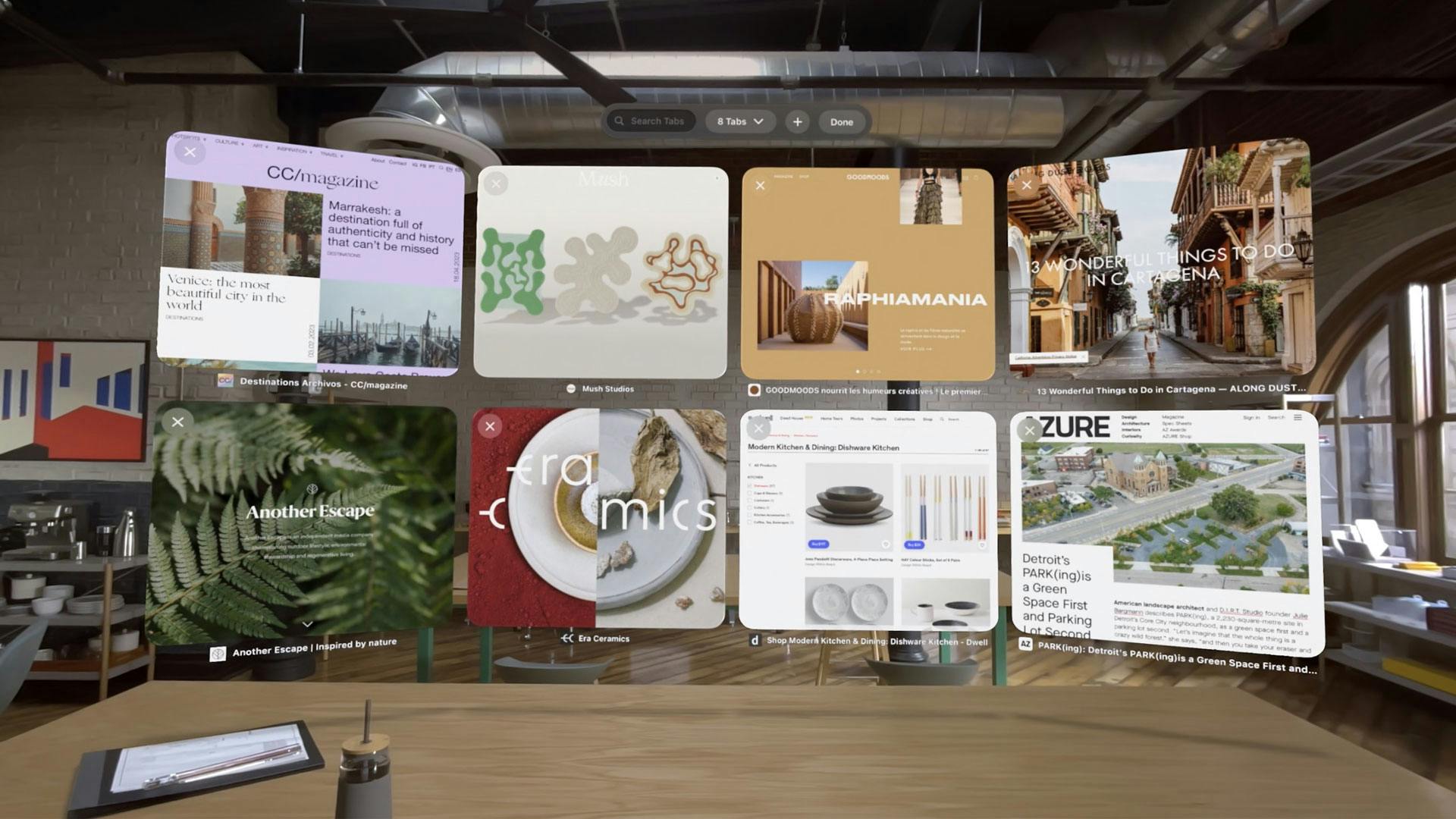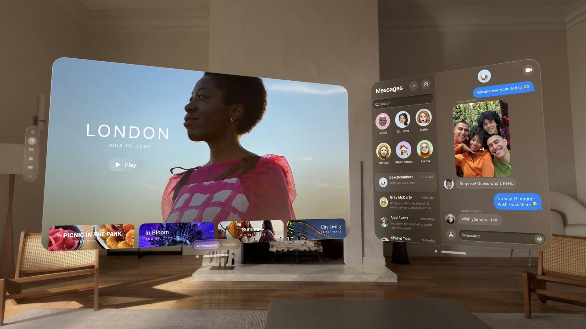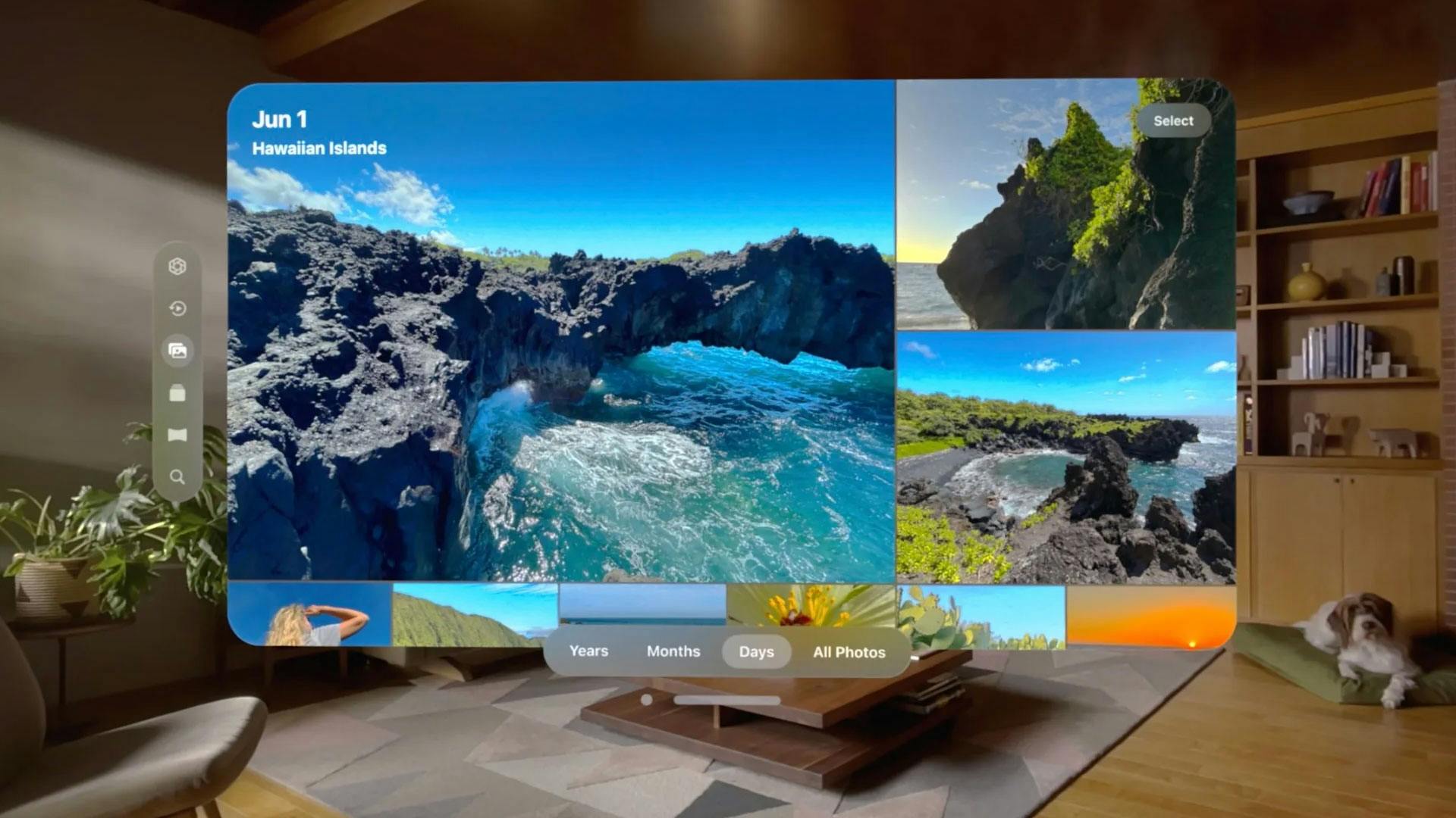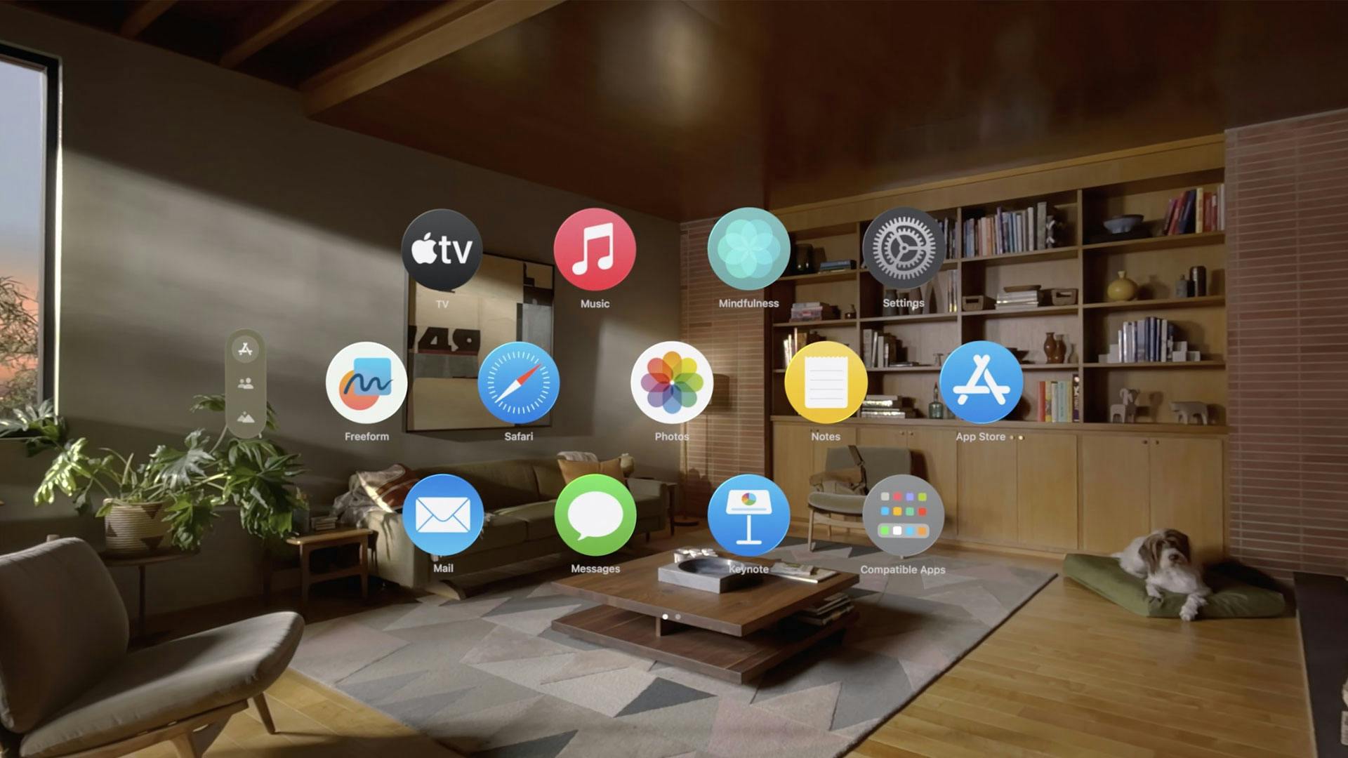De Apple Vision Pro is een bril bedoeld voor mixed reality. Dat betekent dat je digitale lagen over de echte wereld kunt plaatsen wanneer je erdoorheen kijkt. Het apparaat draait op visionOS, een gloednieuw besturingssysteem dat speciaal voor deze bril ontwikkeld is. In tegenstelling tot traditionele computerschermen ben je niet gebonden aan schermranden, waardoor je in staat bent overal appvensters te plaatsen. Dat komt doordat de interface driedimensionaal is. Verder kun je apps zo groot maken als je zelf wil en de onderdompeling bedienen met de Digitale kroon.