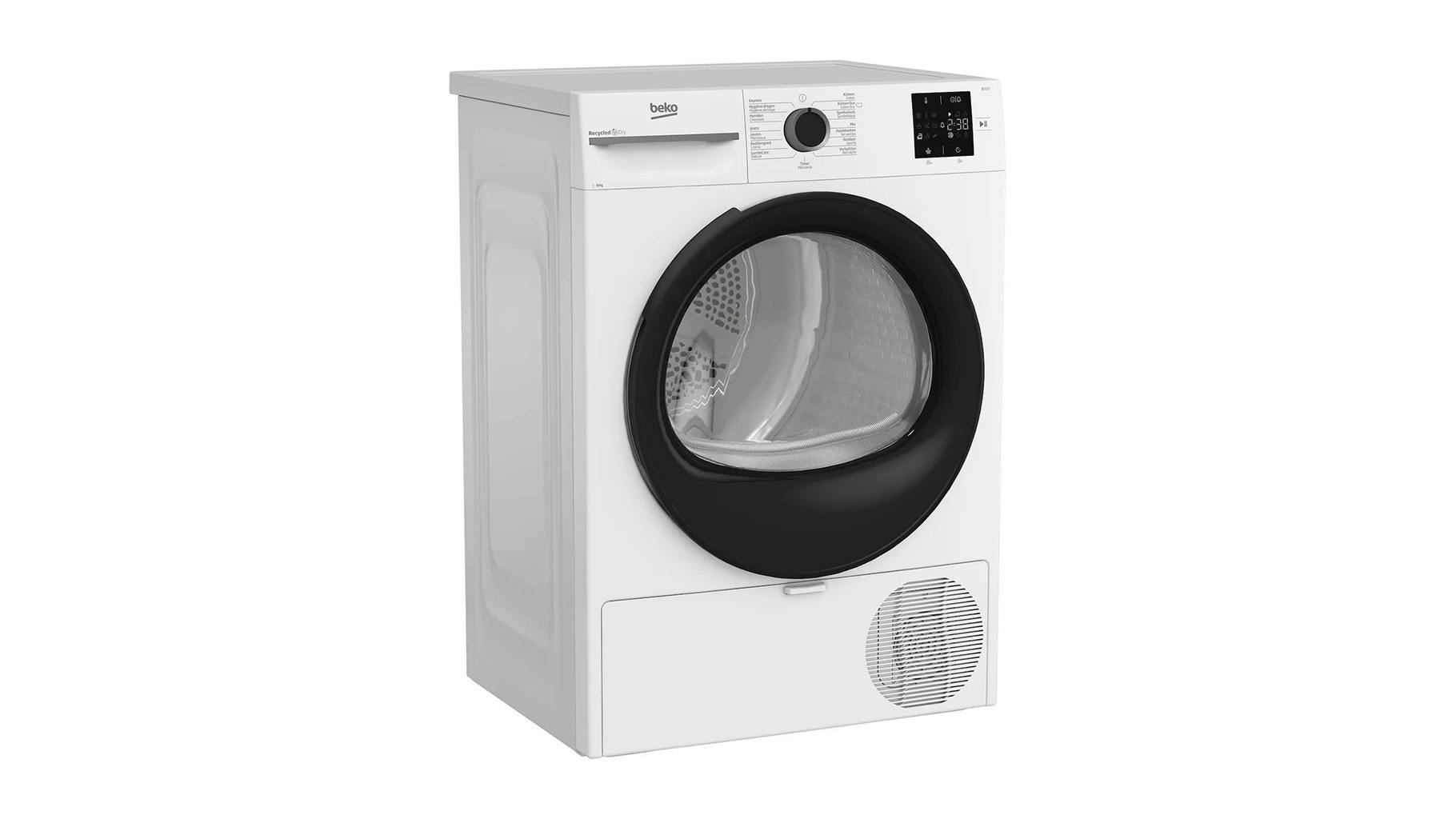 De Beko BM3T3823W is een energiezuinige warmtepompdroger met een capaciteit van 8 kilo. Dankzij EcoGentle blijven kleuren mooi, terwijl het AquaWave-systeem zorgt voor een zachte trommelbeweging die slijtage beperkt. De vijftien programma's bieden opties voor uiteenlopende stoffen, van katoen tot fijne was. Het overzichtelijke LED-display toont de resterende tijd en maakt elke instelling eenvoudig.