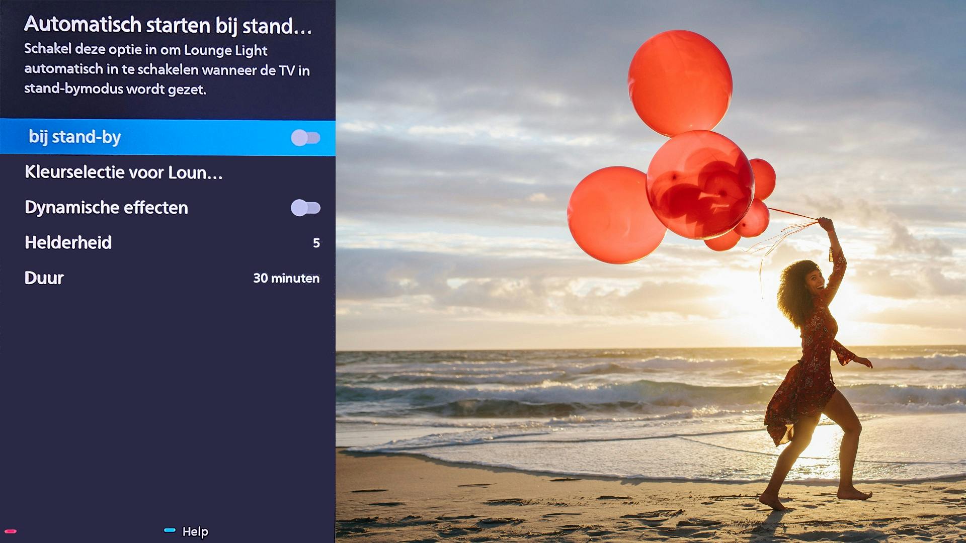 Via de optie Lounge Light kun je Ambilight ook gebruiken als je geen tv kijkt. Je kan het automatisch laten starten wanneer je de tv uitzet, maar je kunt ook op de Ambilight-toets drukken als de tv uitstaat. Ook hier heb je allerlei mogelijkheden om het licht aan te passen naar jouw smaak.