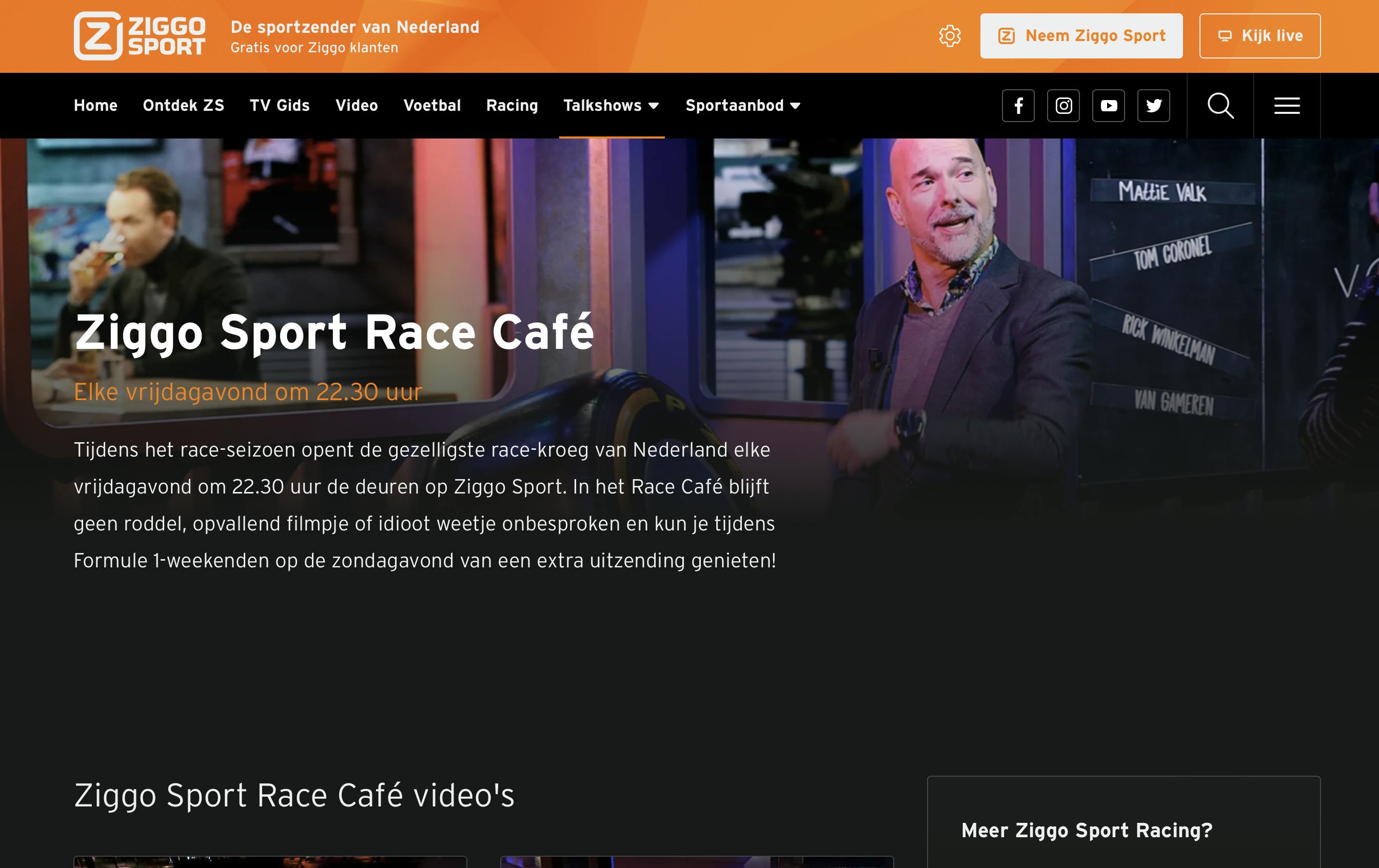 De afgelopen jaren had Ziggo Sport het alleenrecht op het uitzenden van Formule 1 in Nederland, maar daar is sinds de komst van Viaplay een eind aan gekomen. Toch zijn er nog wel wat dingen op Ziggo Sport te bekijken. Het Formule 1 Café dat voor en na de races te zien was op Ziggo Sport, heet vanaf nu officieel Ziggo Sport Race Café en is gedurende het hele weekeinde te zien. Dat begint al op vrijdagavond en heeft een extra uitzending na de races op zondag.