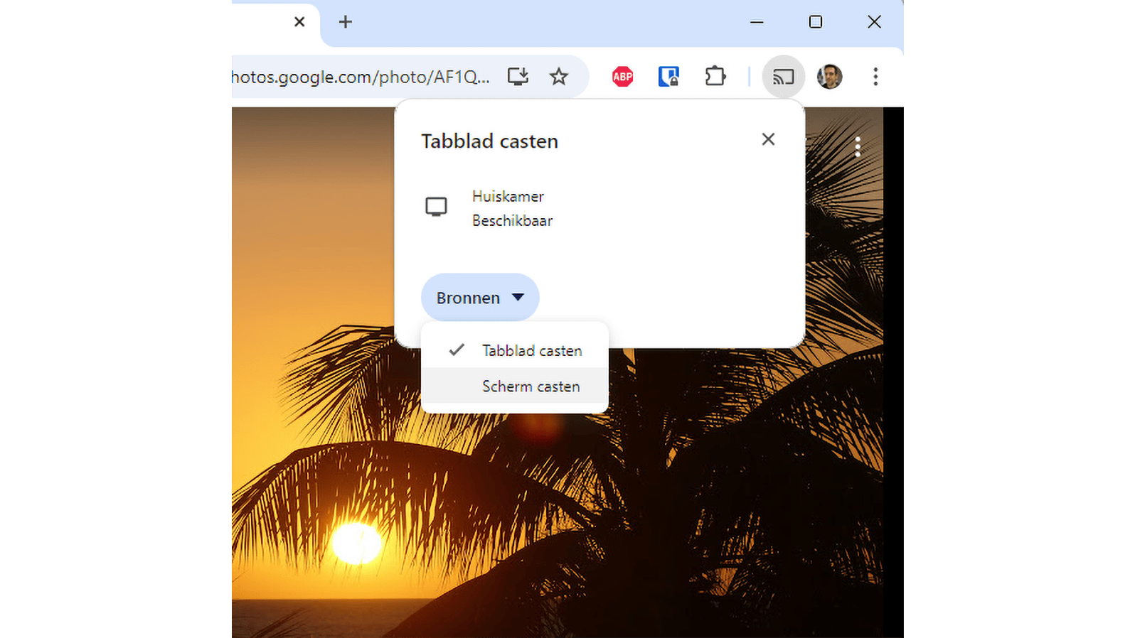 De bekende browser Chrome heeft in het menu een Google Cast-functie.