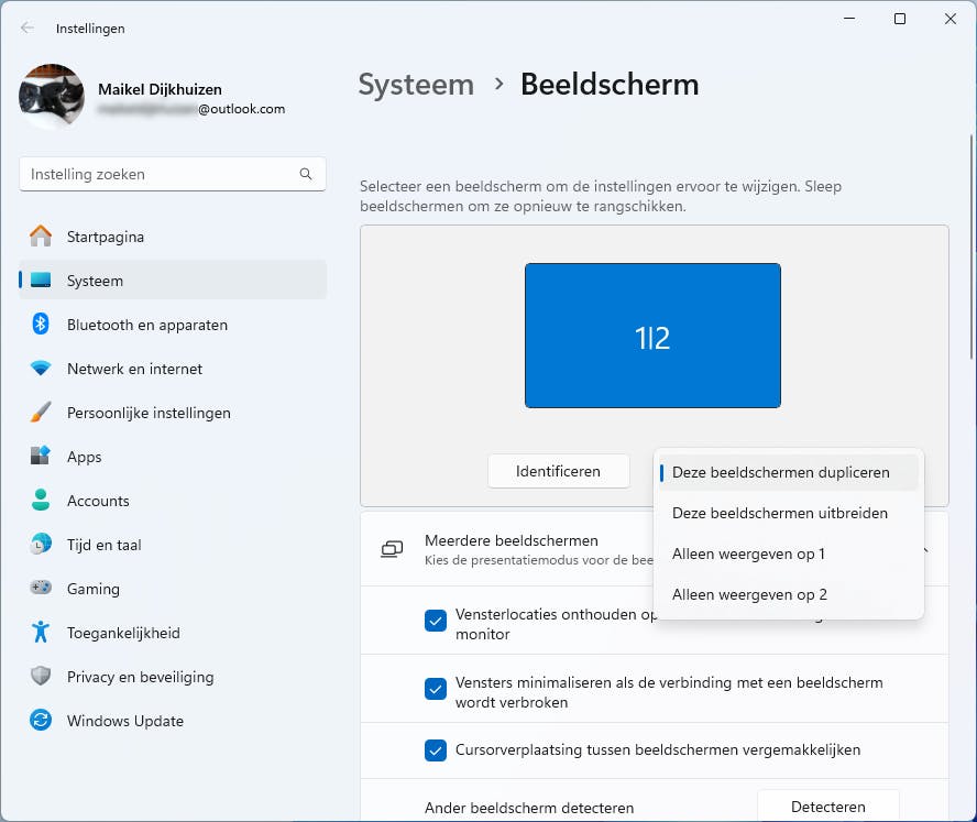 Wil je het beeld dupliceren of zet je de laptop op zwart?