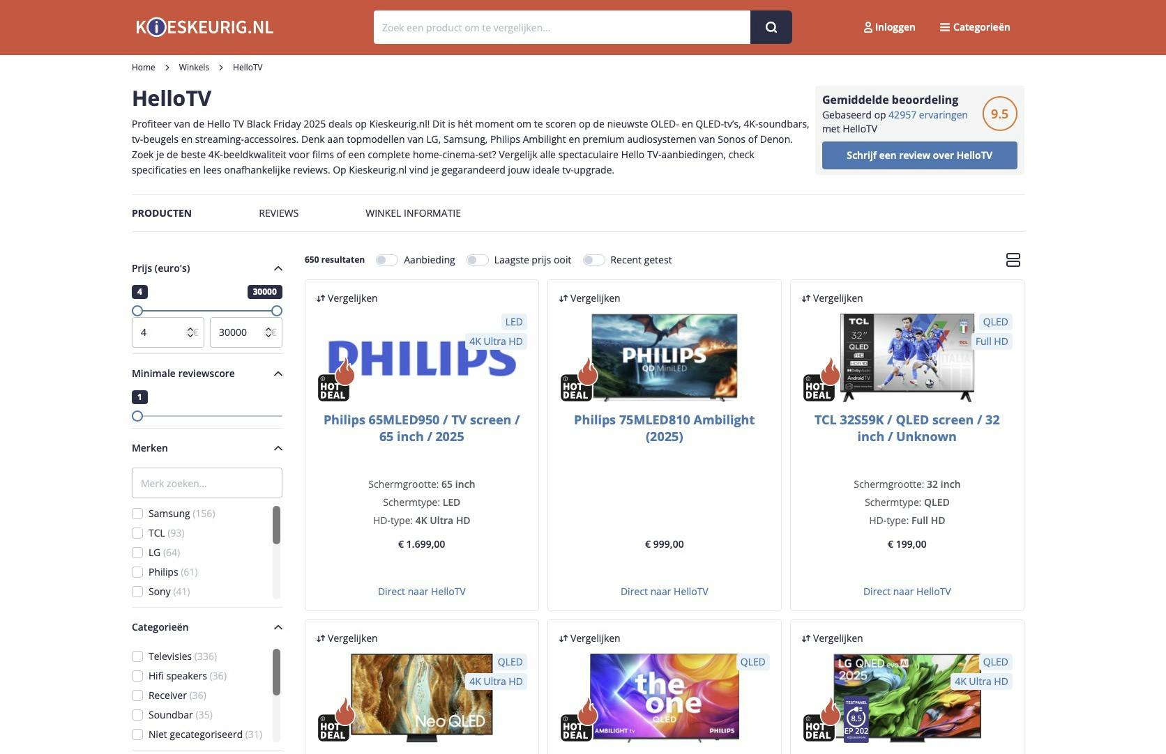 De combinatie van hoogwaardige merken, een gespecialiseerd aanbod en scherpe Black Friday-acties maakt Hello TV een uitstekende keuze voor iedereen die zijn thuisbioscoop wil verbeteren. Wie nu alvast wil oriënteren of direct prijzen wil vergelijken, vindt het volledige overzicht via de Hello TV-winkelpagina op Kieskeurig.nl: https://www.kieskeurig.nl/winkels/hellotv