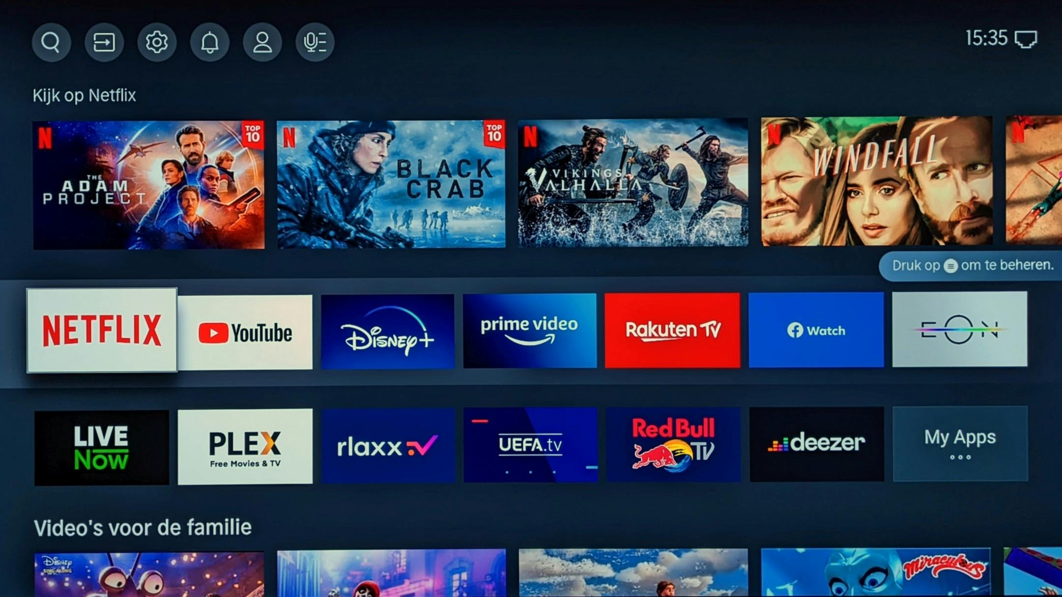 Kijken we naar de belangrijkste streamingdiensten, dan heb je momenteel al toegang tot YouTube, Netflix, Disney+, Amazon Prime Video, Apple TV+, NPO Start, KIJK, en NLziet. Hisense liet weten dat ze later op het jaar nog heel wat diensten zullen toevoegen. In die lijst vinden we HBO Max, Viaplay, Videoland, Streamz en VTM Go. Op het Home scherm kan je twee rijen apps naar wens organiseren, zodat je favoriete dienst nooit ver weg is.