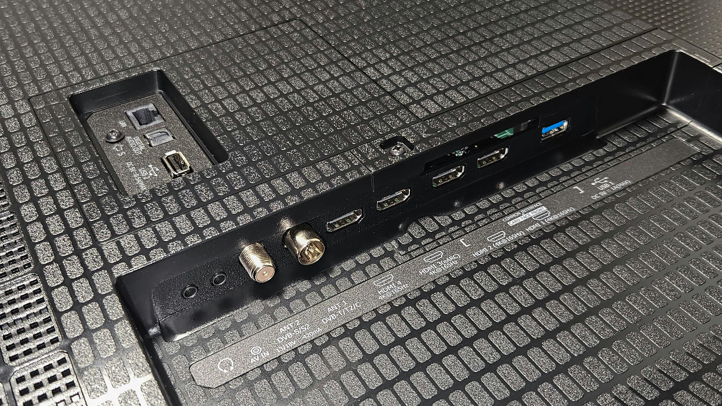 De U7Q Pro is daarnaast uitgerust met twee usb-poorten, een minijack-ingang voor composiet video en stereo, een hoofdtelefoonaansluiting, optisch digitale audio-uitgang, ethernet, wifi 5 en bluetooth. Even opletten bij wandmontage, want de ethernetpoort, een van de usb-poorten en de optisch digitale audio-uitgang wijzen naar achteren. De rest van de aansluitingen bevindt zich aan de zijkant. De tv heeft een enkelvoudige DVB-T/T2/C-tuner, een DVB-S/S2-tuner en een CI+-slot. Met behulp van externe usb-opslag kun je live-tv pauzeren of opnemen.