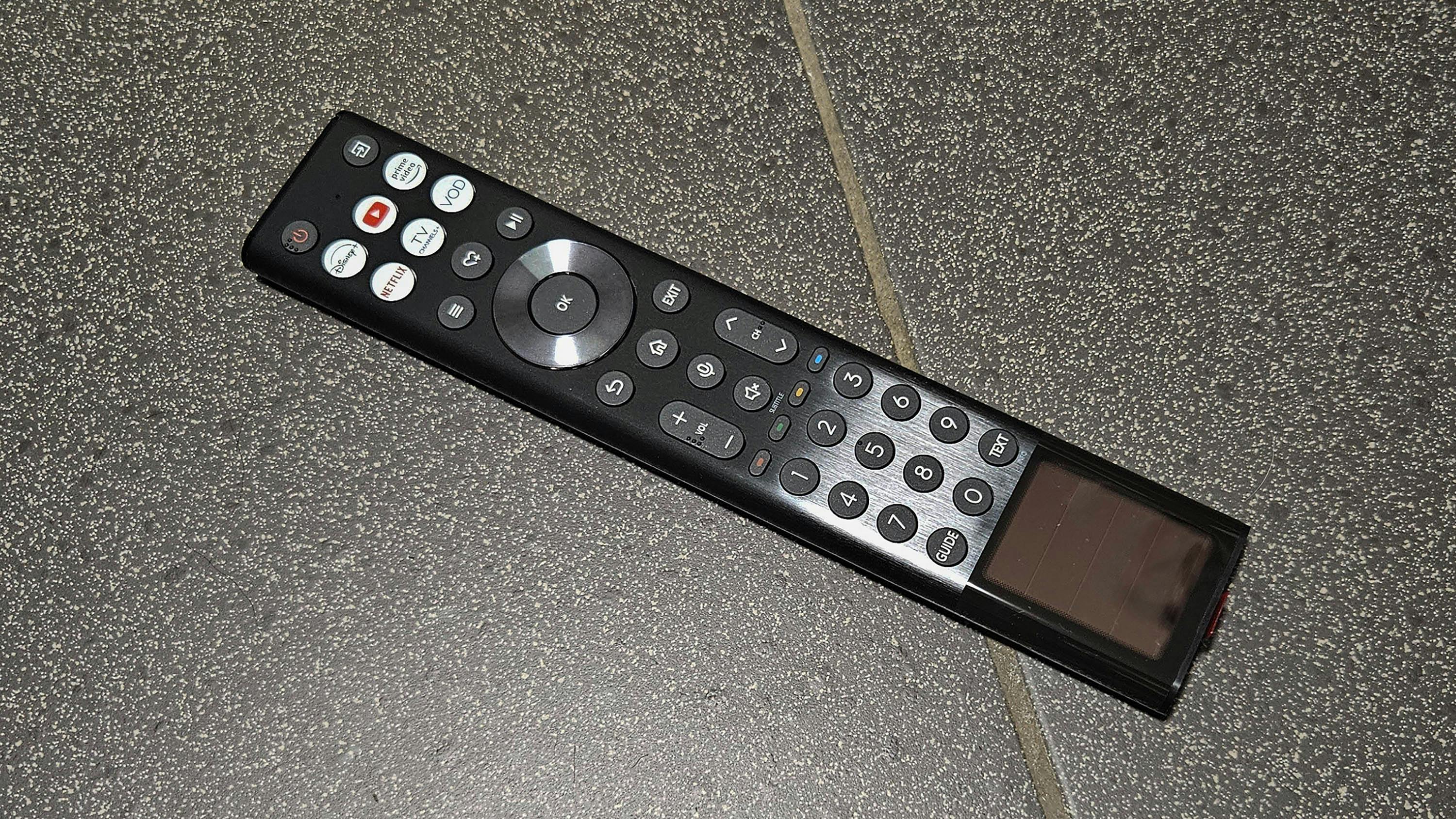 De afstandsbediening is op wat kleine wijzigingen na overgenomen van vorig jaar. Ze is aangenaam in gebruik, vooral door de toetsen met zachte maar duidelijke aanslag. De ingebouwde oplaadbare batterij wordt gevoed door een fotovoltaïsch (zonne)paneel. Doordat dat aan de voorzijde is geplaatst, is de afstandsbediening relatief lang van vorm, maar dat stoort eigenlijk nooit.
