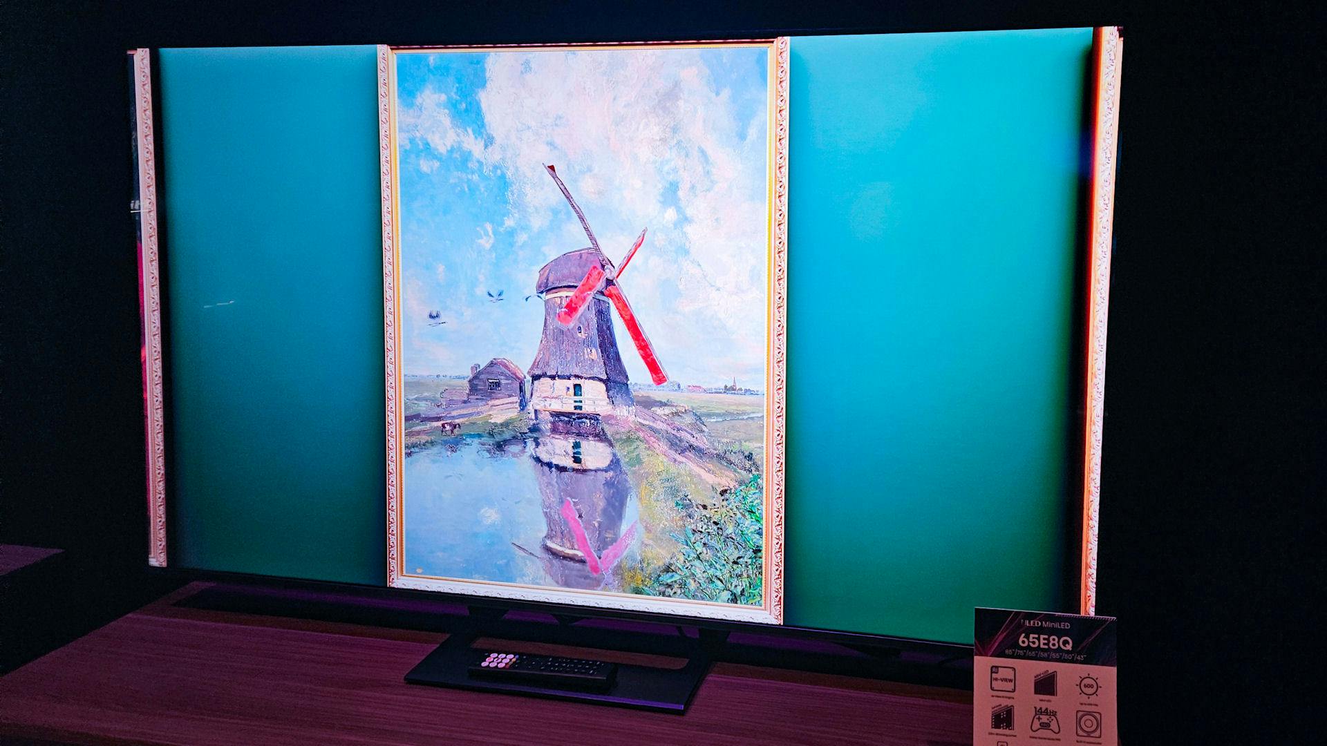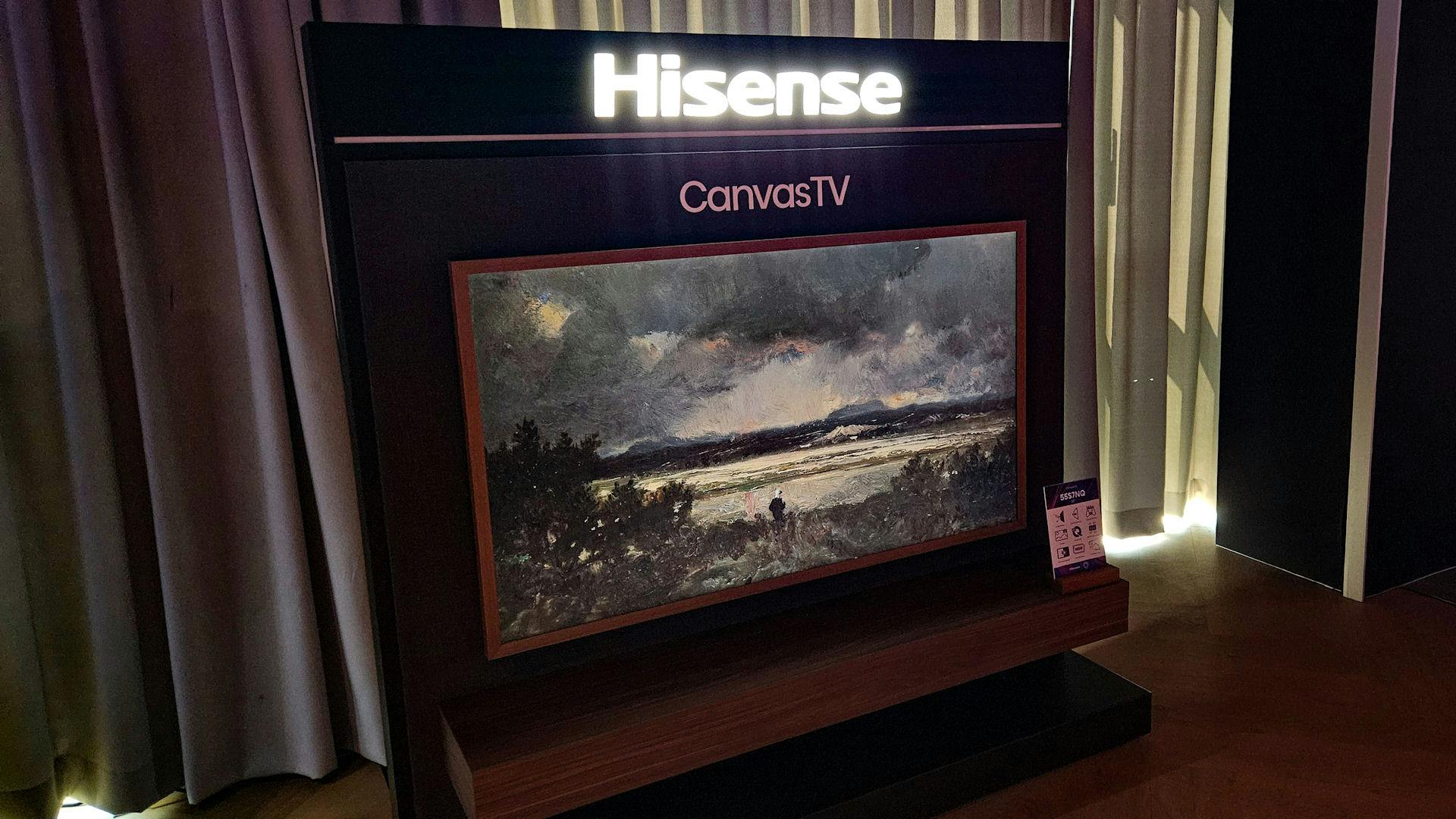 Hisense mikt net als Samsung en TCL op mensen die de tv willen laten dubbelen als kunstwerk. De S7NQ Canvas TV is enkel beschikbaar in 55 inch en werd vorig jaar in het najaar geïntroduceerd. Het toestel gebruikt een edge-led QLED-achtergrondverlichting die tot 400 nits levert, heeft een 144Hz refreshrate en een mat scherm om reflecties te weren. De omlijsting is beschikbaar in drie kleuren (wit, licht hout en donker hout).