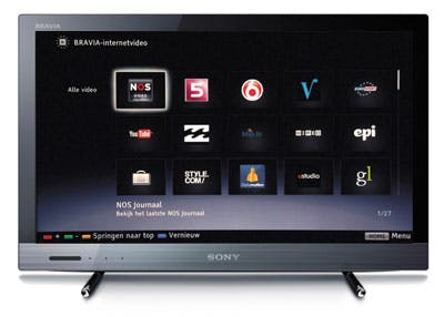 Sony’s internetfunctionaliteit is inmiddels vrij uitgebreid en bestaat uit twee onderdelen: widgets en internetvideo. De widgets zijn feitelijk het Yahoo Internet TV-formaat en bevat onder andere YouTube, Tahoo Finanace, Twitter, Facebook en een weerservice. Ook hier geldt dat de praktische functionaliteit door het ontbreken van een toetsenbord beperkt is. Interessanter is wat ons betreft dan ook de Bravia Internet Video-functionaliteit. Onder deze noemer vinden we videodiensten van een groot aantal aanbieders waaronder YouTube, Dailymotion, Blip.TV, Wired, FIFA Voetbal, Ford models, maar ook Net5, SBS6, Veronica en NOS Uitzending Gemist-diensten. RTL ontbreekt vooralsnog, wat ook geldt voor een betaalde video-on-demand-dienst. Daar komt binnenkort verandering in: Sony lanceert naar verwachting later dit jaar zijn Qriocity muziek- en videodienst in Nederland.