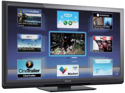 Panasonic heeft zijn internetdienst dit jaar een kleine make-over gegeven. Waar tot vorig jaar de naam ‘Viera Cast’ werd gebruikt, heet het systeem bij de nieuwe modellen ‘Viera Connect’; het is nu ook voorzien van een ‘market’ waar nieuwe apps gedownload kunnen worden. Het aanbod van Viera Cast verschilt per land. In Nederland komen we onder andere YouTube, Eurosport, Euronews, Picasa fotoalbums, Dailymotion, Twitter, Facebook, Weatherinfo en Skype tegen. Voor die laatste functie geldt dat helaas wel een speciale Panasonic-webcam nodig is die ruim 150 euro kost. Panasonics internetfunctionaliteit werkt lekker vlot en het aanbod is aardig, maar helaas missen specifiek op Nederland gerichte diensten zoals Uitzending Gemist van de publieke en commerciële omroepen. Ook een Nederlandse video-on-demand-aanbieder maakt nog geen onderdeel uit van het aanbod.