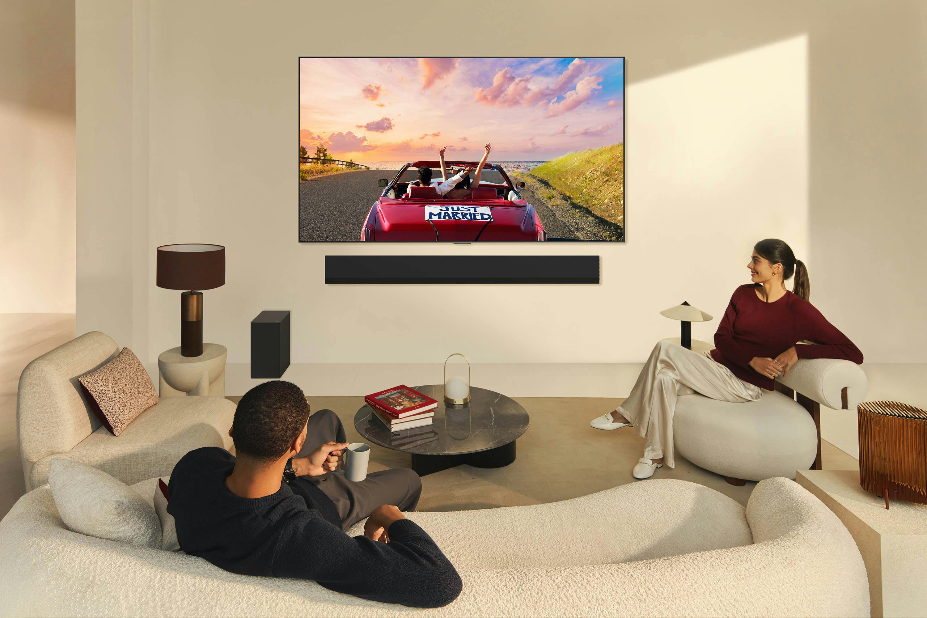 Een bijzonder slanke tv is zelden een recept voor indrukwekkende audio, maar LG slaagt er toch in om behoorlijk goede audio in dit profiel te stoppen. De 60 watt sterke 4.2-kanaalsoplossing kan lekker uit de hoek komen met warme, goed gebalanceerde klanken, een hoorbare baslijn en een prima surround-ervaring. De tv ondersteunt bovendien Dolby Atmos en DTS:X, maar het hoogte-effect blijft afwezig. Ook bij wat hoger volume blijft de vervorming zeer beperkt. Kortom, goede prestaties, maar ze verbleken toch wat bij de beeldkwaliteit. Wie de audio naar hetzelfde (hoge) niveau wil tillen, moet een (high-end) soundbar kiezen.