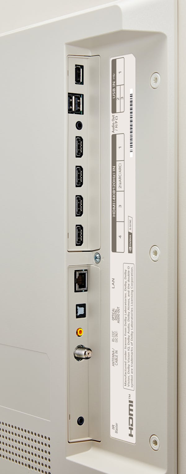 - Aansluitingen: 4x HDMI (4x v2.1 (48 Gbps), ARC/eARC, ALLM, VRR, 4K120), 3x USB, 1x optisch digitaal uit, 2x antenne, 1x IR-blaster, bluetooth 5.0, WiSA