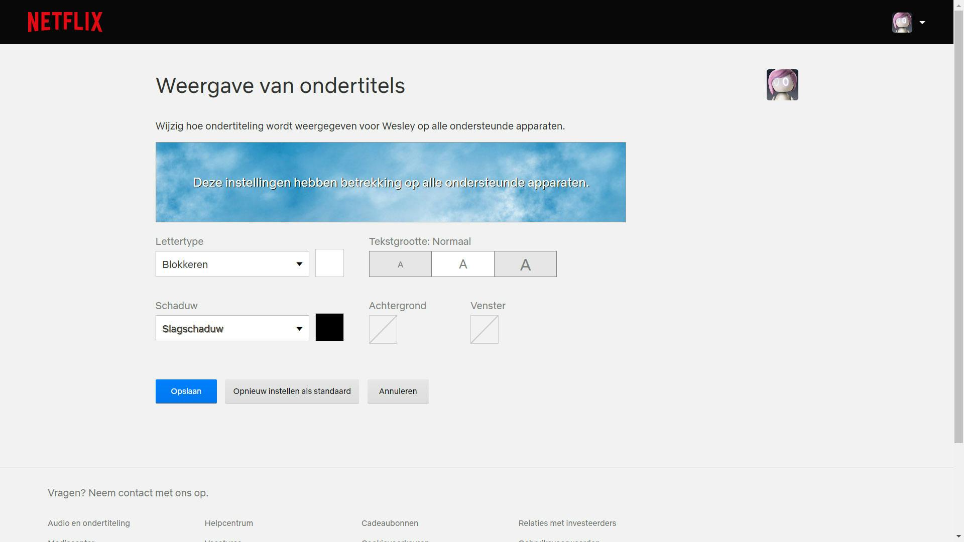 Netflix biedt je de optie om de instellingen met betrekking tot de ondertiteling aan te passen. Dat kan bijvoorbeeld voor de Nederlandse taal, maar heb je Arabisch, Hebreeuws, Japans, Koreaans, Roemeens, Thai of Traditioneel Chinees als hoofdtaal van je profiel ingesteld, dan vis je helaas (nog) achter het net. Maar in alle andere gevallen is het dus mogelijk het lettertype, de tekstgrootte, de schaduw en de achtergrondkleur van de ondertitels en captions te wijzigen. Per platform verschilt hoe je dat doet.