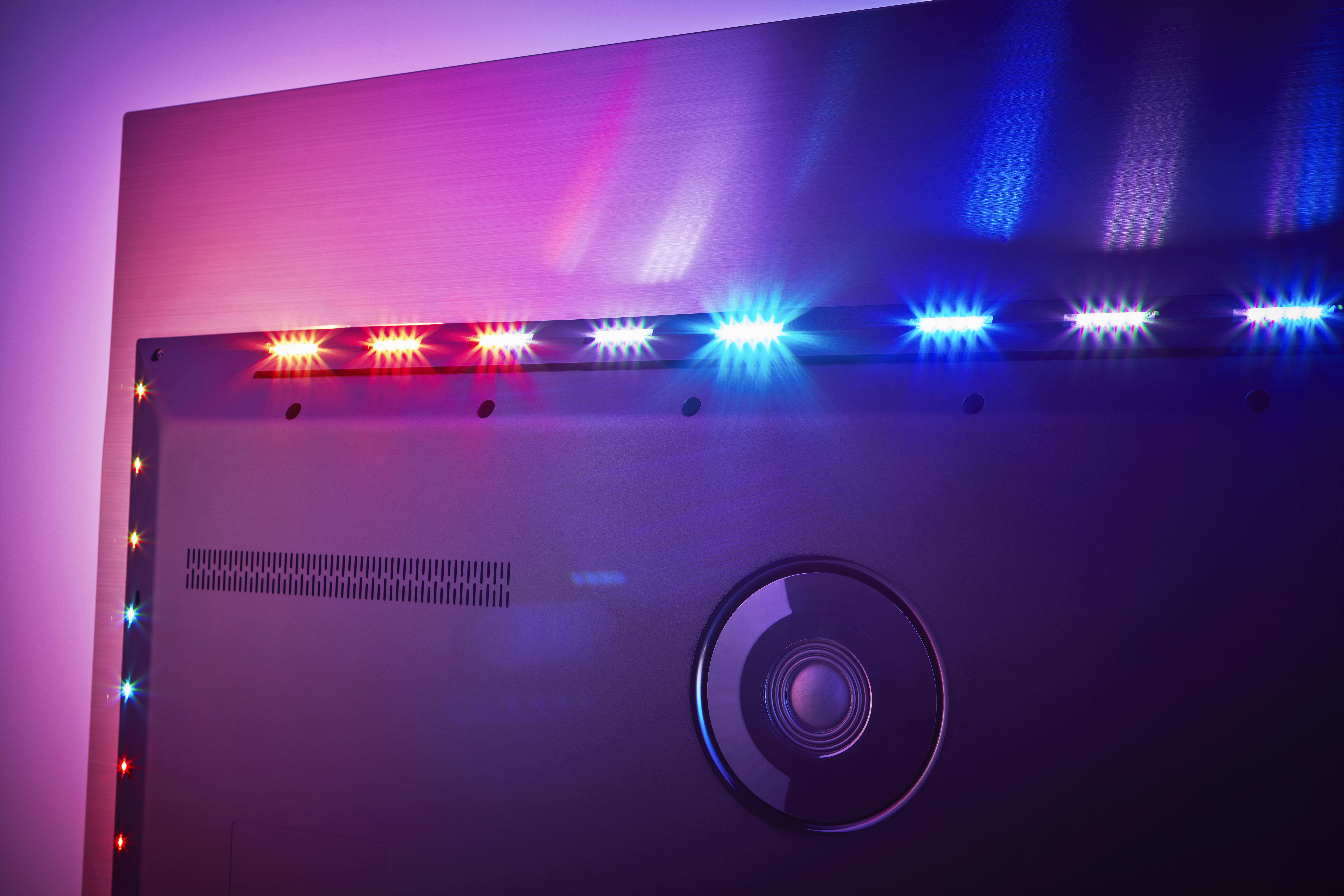 Ambilight is een unieke feature van Philips televisies. Piepkleine leds aan de achterkant van het scherm schijnen een gekleurde gloed op de wand achter de televisie. Ambilight kan die kleuren mee laten evolueren met het beeld op het scherm, waardoor het scherm groter lijkt. Je kunt de kleuren ook laten veranderen op basis van muziek of instellen als een lounge licht. Deze televisie is uitgerust met een driezijdige Ambilight, waar je overigens ook je Philips Hue-lampen aan kunt koppelen.