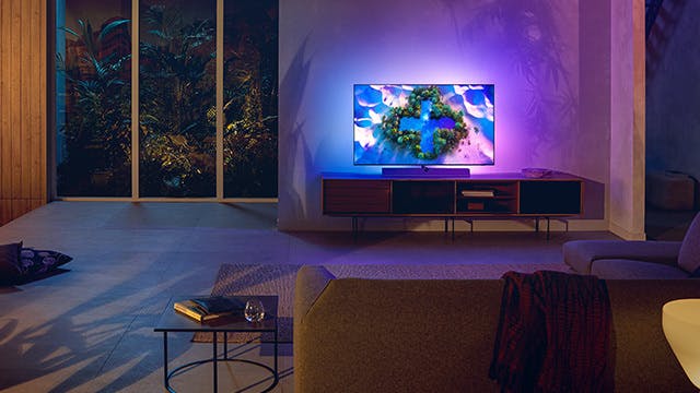 De Bowers & Wilkins geluidsoplossing geeft de tv niet enkel een uniek uitzicht maar brengt ook heel knap geluid naar de woonkamer. Films in Dolby Atmos vullen de kamer moeiteloos. Smart features worden geleverd door Android TV, en met DTS Play-Fi en vierzijdige Ambilight heeft deze Philips nog twee unieke troeven.