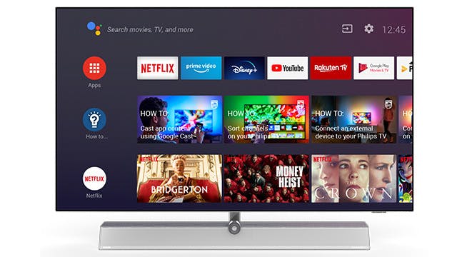 Philips gebruikt Android TV als smart tv-platform. Dat betekent een zeer ruime bibliotheek aan toepassingen, waaronder alle belangrijke streamingdiensten. De interface werkt vlot en snel, met dank aan een krachtige chipset. De remote is een slanke verschijning die goed en lekker in de hand ligt dankzij de Muirhead leder rug. Toch zijn we er niet helemaal tevreden over. De vlakke afwerking en nauw op elkaar aansluitende toetsen veroorzaakt namelijk te gemakkelijk een ongewenste toetsaanslag.