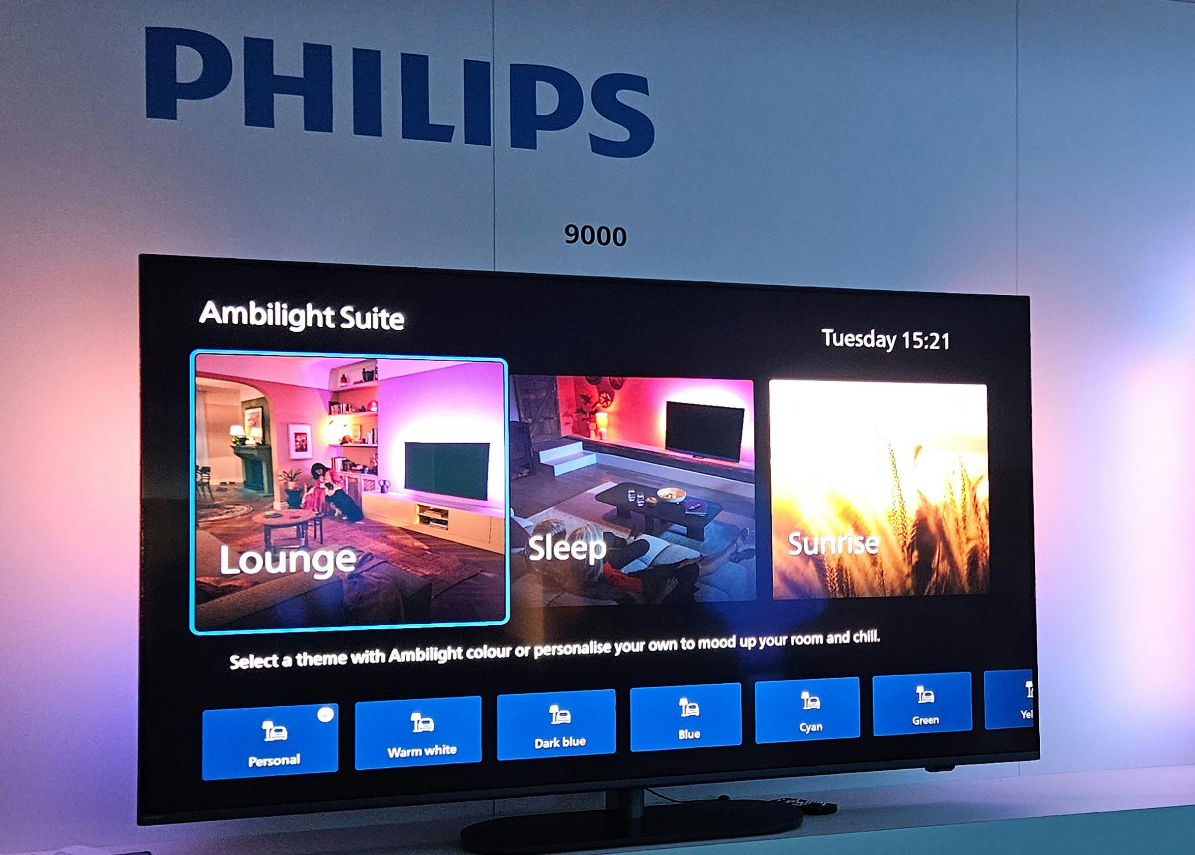 Wat wel op alle modellen beschikbaar zal zijn, is de nieuwe interface voor Ambilight, Ambilight Suite. Daar kan je alle instellingen aanpassen en snel opties zoals Lounge, Sleep of Sunrise activeren. Alle Ambilight tv’s krijgen ook toegang tot een exclusieve Moments app. In die app maak je digitale foto-albums op basis van aangeboden sjablonen, eventueel tekst en muziek. Dat fotoalbum stuur je dan met een klik naar je Ambilight tv.