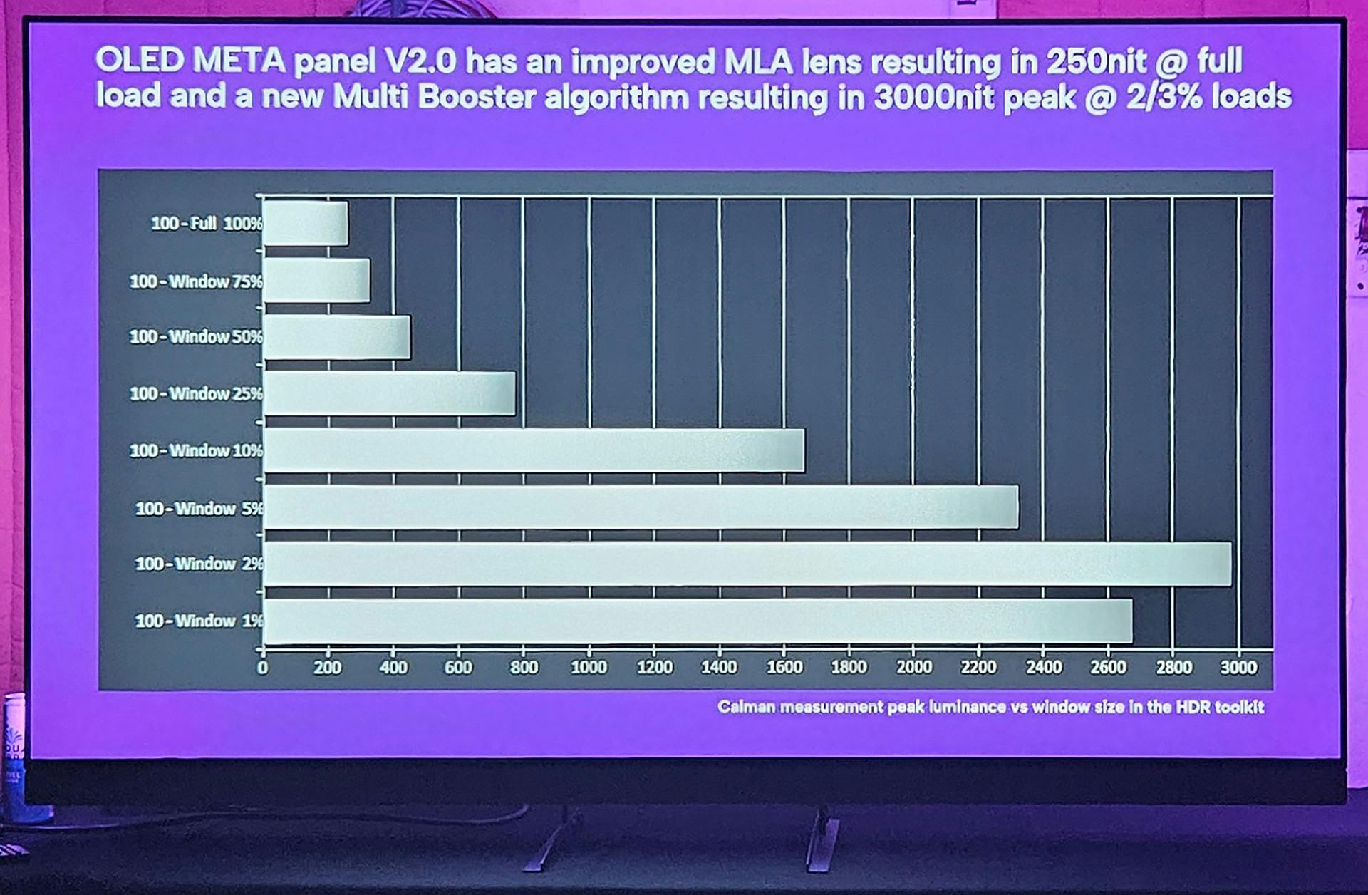 Voor zijn beeldprestaties leunt de OLED+959 op het nieuwste META 2.0-oledpaneel. Dit paneel gebruikt verbeterde microlenzen en sturingsalgoritmen om nog meer piekhelderheid te creëren. Zo kan het scherm in de beeldmodus genaamd Kristalhelder tot 3000 nits piekhelderheid leveren, al kan dat zoals typisch bij oledpanelen alleen op een 2%-deel van het scherm.