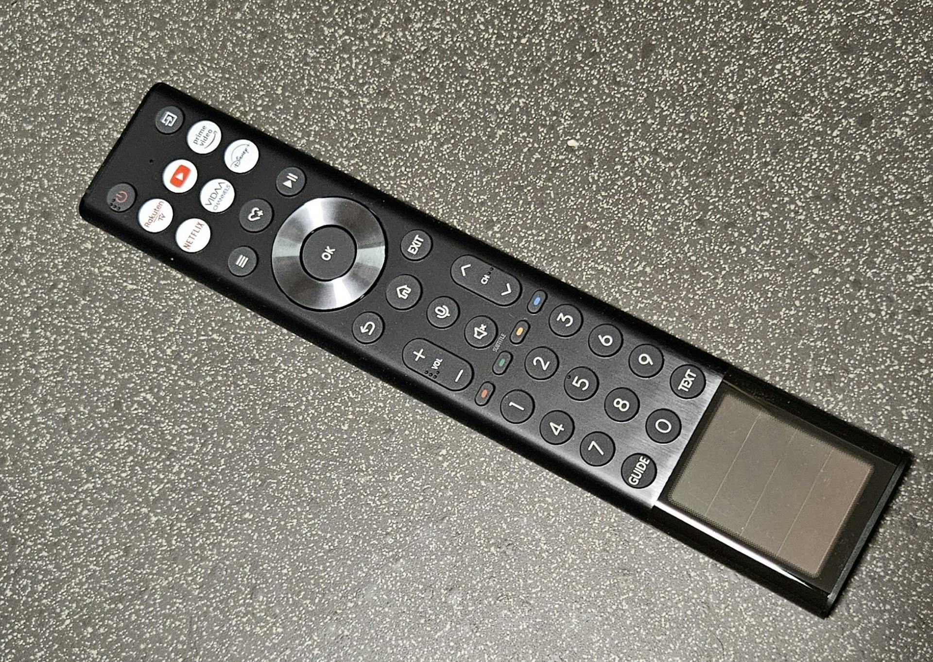 Een goed punt: ook de U79NQ kreeg de nieuwe afstandsbediening met een fotovoltaïsche cel aan de voorzijde en ingebouwde oplaadbare batterij. De afstandsbediening ligt ondanks de vrij lange vorm prima in de hand, en de toetsen hebben een zachte maar duidelijke aanslag.