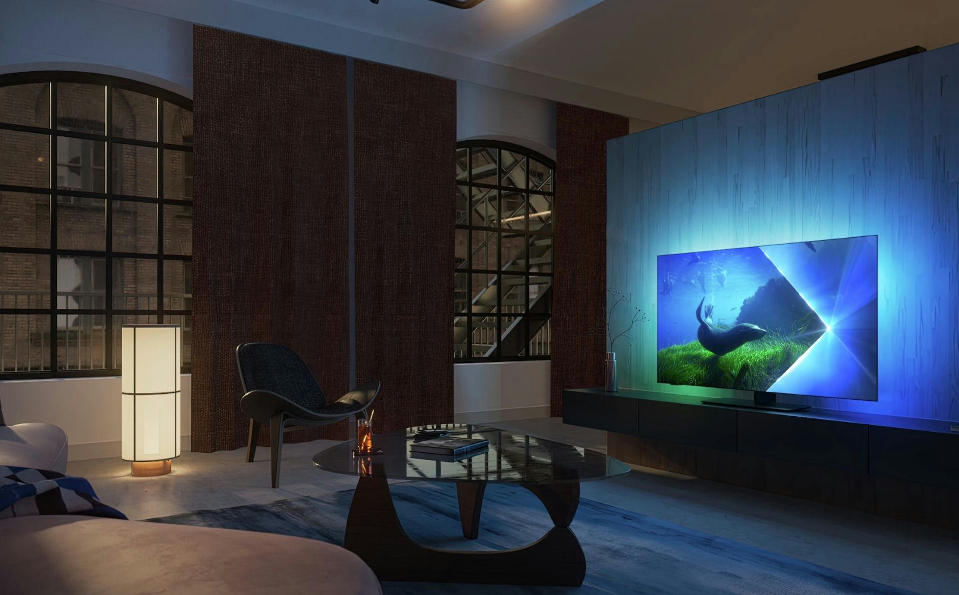 Omdat extreme kleuren het beeld te veel zouden beïnvloeden heeft Philips wel grenzen gezet, je hoeft dus niet bang te zijn dat het beeld plots groen uitslaat als je ergens een groene spot hebt staan. De tv kan dus het lichtniveau aanpassen, de donkere details optimaliseren, en de kleurtemperatuur aanpassen, allemaal op basis van de lichtsensor. Kijk je hoofdzakelijk bij weinig licht, dan is dat niet echt nodig, maar wie veel bij wisselende omstandigheden kijkt, zal dit erg handig vinden. De lichtsensor werkt voor alle types content, van SDR tot alle HDR-varianten.