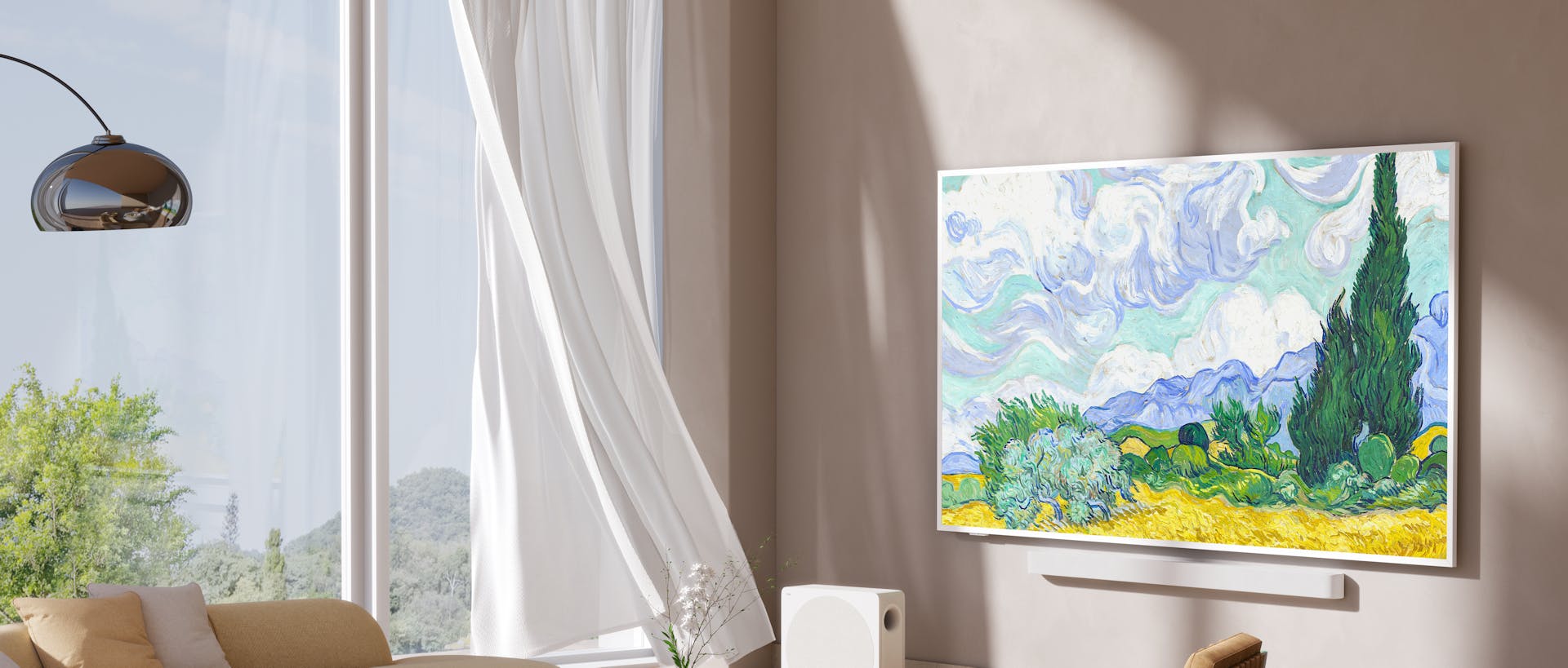 Over het design, de kaders en de opstelling zijn we tevreden, al kan TCL nog een beetje aan de afwerking verbeteren. Het belangrijkste minpunt is het matige contrast en de povere prestaties met donkere beelden. Daar hebben andere TCL-modellen geen last van, dus dat verraste ons. Voor een tv die als kunstkader moet dienen, is de matige kijkhoek ook jammer. Het matte scherm is een prima keuze; het gaat reflecties tegen en maakt de kunstbeleving wat tastbaarder. Goede helderheid en prima kleurvolume leveren mooie beelden. Het kunstaanbod is gratis, maar wel wat beperkt, ook al wordt het aangevuld met een ruim AI-kunstaanbod. Je kunt van HDR genieten op deze tv; hij ondersteunt bovendien alle belangrijke formaten, maar de echte punch van die beelden ontbreekt. De B&O-soundbar is een aangename verrassing. Dat DTS:X en Dolby Atmos ontbreken, vinden we geen drama; deze tv is niet gericht op epische filmweergave. Kortom, een goede woonkamer-tv met kunstambities, maar geen thuisbioscoop.
