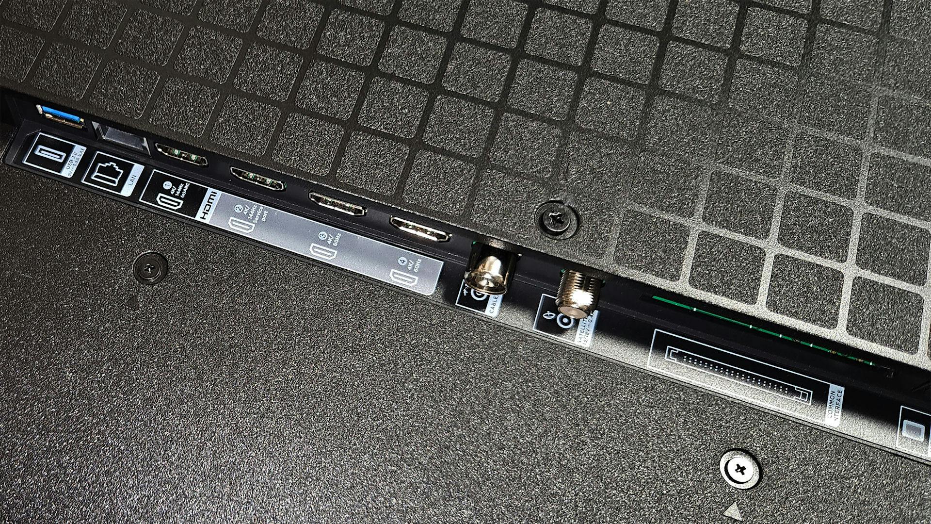 Heb je thuis meerdere high-end gamebronnen én een soundbar, dan moet je er wel rekening mee houden dat ARC/eARC slechts op één van de 48Gbit/s-poorten is ingeschakeld, en je dus maar één dergelijke poort overhoudt voor je game-apparaten. Behalve de HDMI-poorten zijn er nog een usb-poort voor media, een digitaal optische audio-uitgang, twee antenne-aansluitingen, wifi 5, ethernet en bluetooth (voor de afstandsbediening en draadloze hoofdtelefoons).