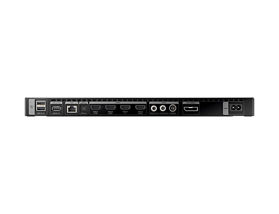 De One Connect box bevat geen analoge aansluitingen meer, maar biedt wel vier HDMI-aansluitingen, allemaal klaar voor Ultra HD HDR. Er is geen hoofdtelefoonaansluiting, maar er is wel Bluetooth voorzien voor een draadloze hoofdtelefoon.