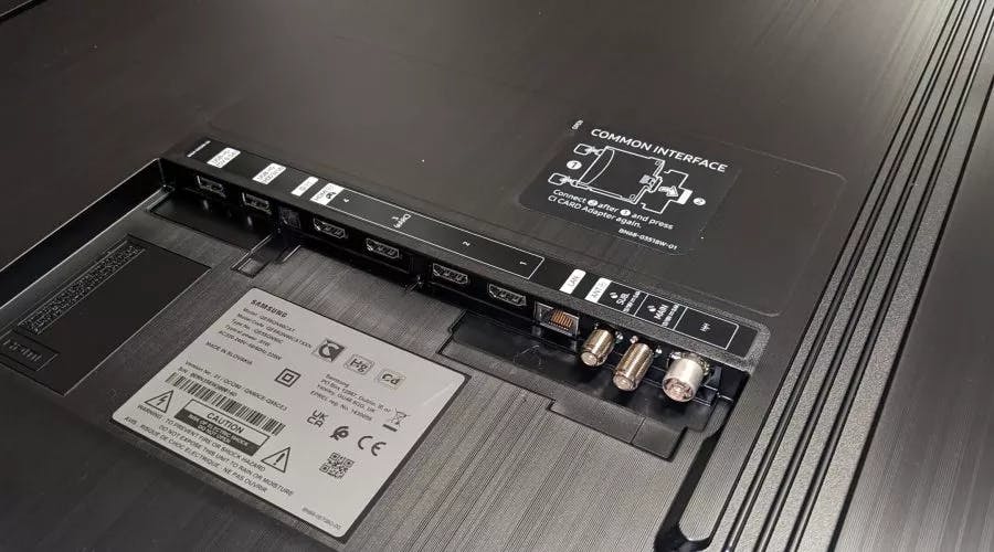 Terwijl veel fabrikanten zich nog steeds beperken tot twee HDMI 2.1-poorten, levert Samsung op de QN90C vier HDMI 2.1-poorten. Allemaal met de maximale bandbreedte (48Gbps), ondersteuning voor 4K120, ALLM en VRR. Naast HDMI VRR kent de tv ook AMD FreeSync, en al staat het niet in de specs bleek hij in onze test ook NVIDIA G-Sync compatible. Op HDMI 3 kan je gebruik maken van de ARC/eARC. Dat de QN90C ook voluit op gamers mikt, mag blijken uit de input-lag. We meten 13,9ms (4K60) en 7,3ms (2K120), prima cijfers. Behalve de HDMI-poorten beschikt de QN90C ook over twee USB-poorten en een optisch digitale audio-uitgang. Een hoofdtelefoon kun je via Bluetooth met de tv verbinden.