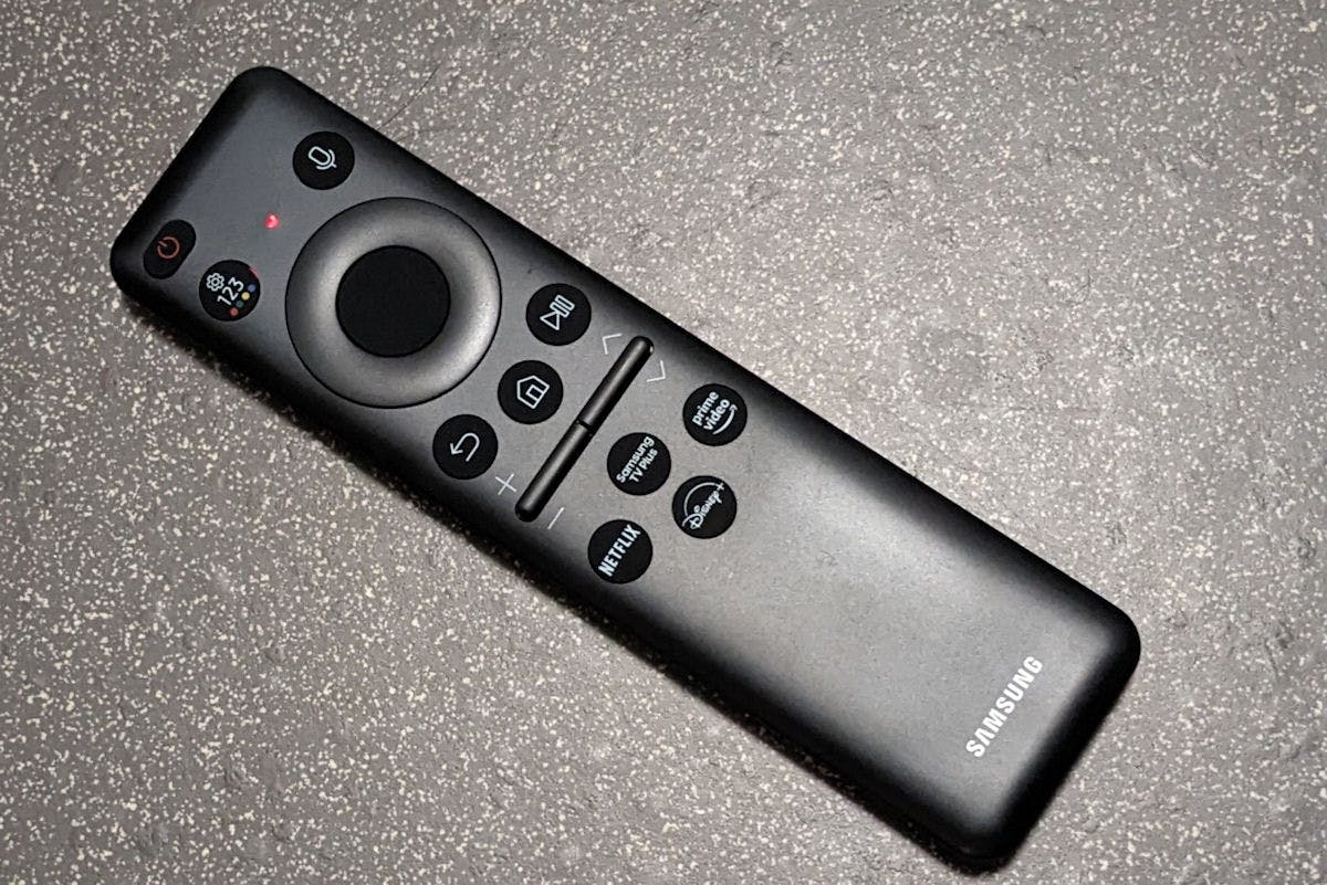 Het Neo Slim-design is geen nieuwigheid, maar het blijft ons toch verbazen. Samsung slaagt erin om een mini-led-achtergrondverlichting - die bij veel concurrenten vaak resulteert in een minder platte televisie - in een ultraslank profiel te stoppen. De tv is amper 26mm dik en heeft een mooie vlakke rug zodat hij ook strak tegen de muur gemonteerd kan worden. Een zilverkleurige metalen rand rond het scherm accentueert zijn profiel nog wat, terwijl het aan de voorzijde niet meer is dan een zilveren lijntje.
