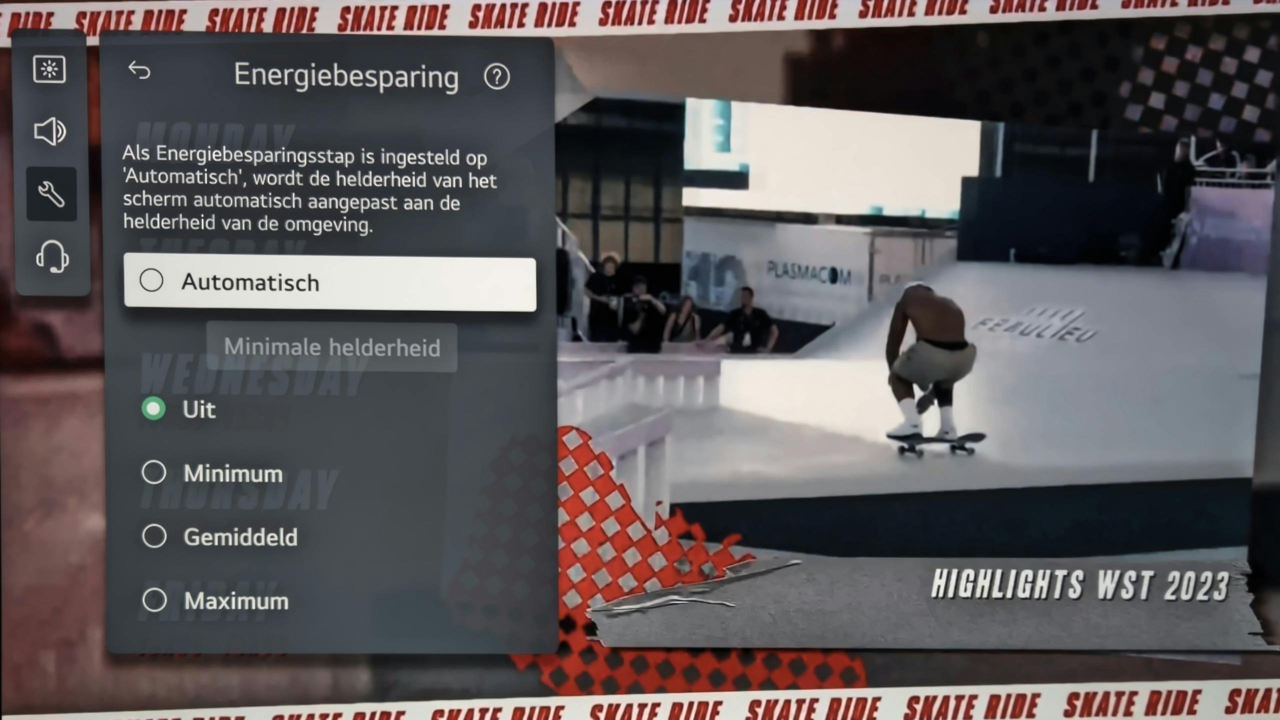 Kijk je soms bij veel omgevingslicht en soms bij weinig, dan is het handig om de lichtsensor te activeren. Die past dan automatisch de helderheid aan op basis van het omgevingslicht. Bij LG vind je deze in het menu onder Algemeen / Energiebesparing. Kies als energiebesparingsstap Automatisch om de lichtsensor te gebruiken. Bij Sony ga je naar Beeld / Ambient Optimalization terwijl je bij Philips naar Beeld / Optimalisatie Lichtniveau gaat. Heb je een televisie van Samsung? Dan vind je de lichtsensor onder Instellingen / Algemeen en privacy / Aan/uit en spaarstand / Helderheidsoptimalisatie. Bij Panasonic ga je naar Beeld / Omgevingssensor terwijl je bij Hisense naar Beeld / Achtergrondverlichting / Lichtsensor gaat. Tot slot is er nog TCL waar je naar Weergave en Geluid / Intelligente instellingen / Intelligente helderheid gaat.