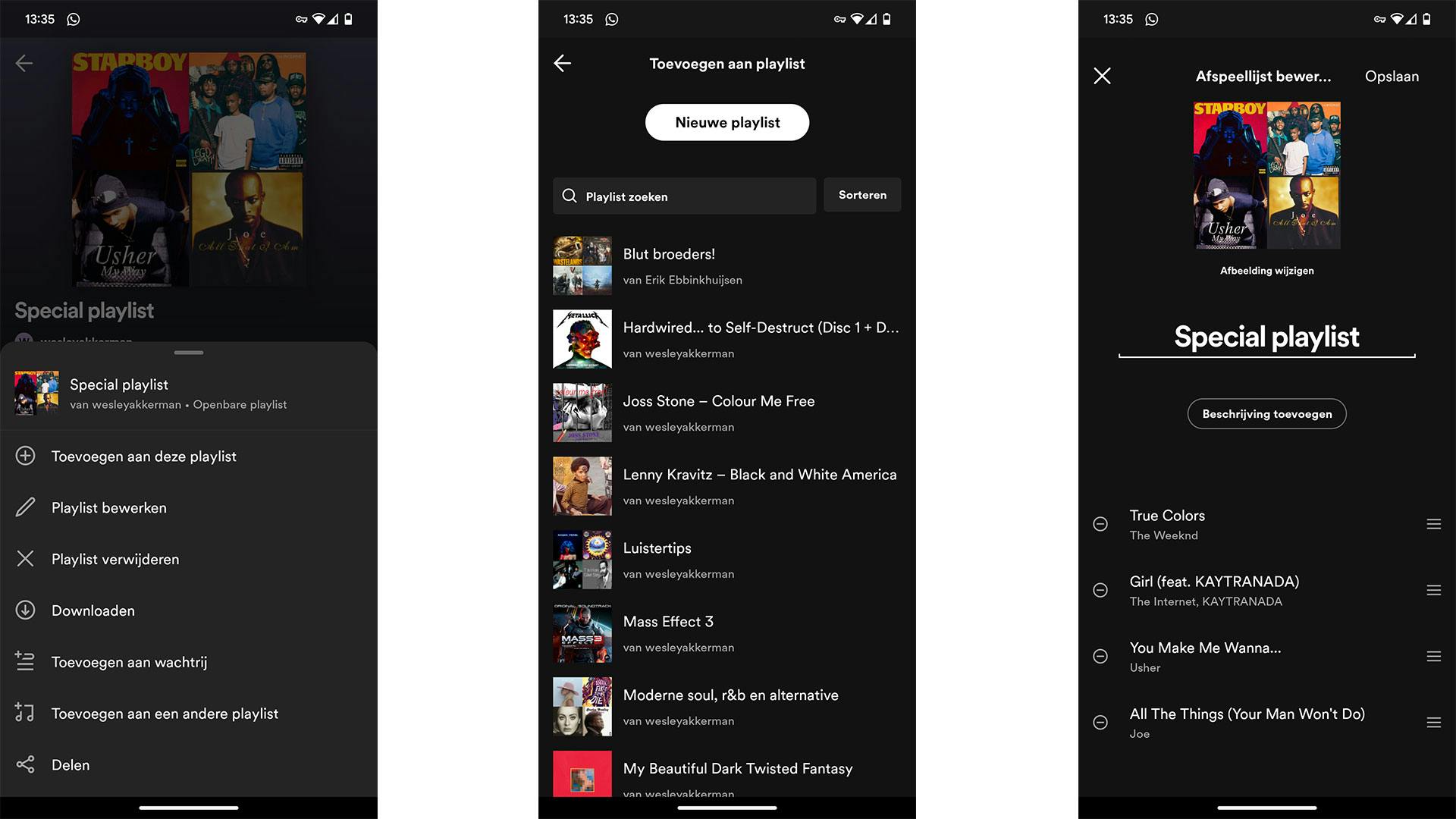 En met die drie stappen is het ook meteen gelukt op mobiele apparaten. Op smartphones en tablets is het mogelijk de nummervolgorde aan te passen door op de drie puntjes en op Playlist bewerken te tikken. Je verschuift de nummers door de ze met de drie liggende streepjes vast te houden.