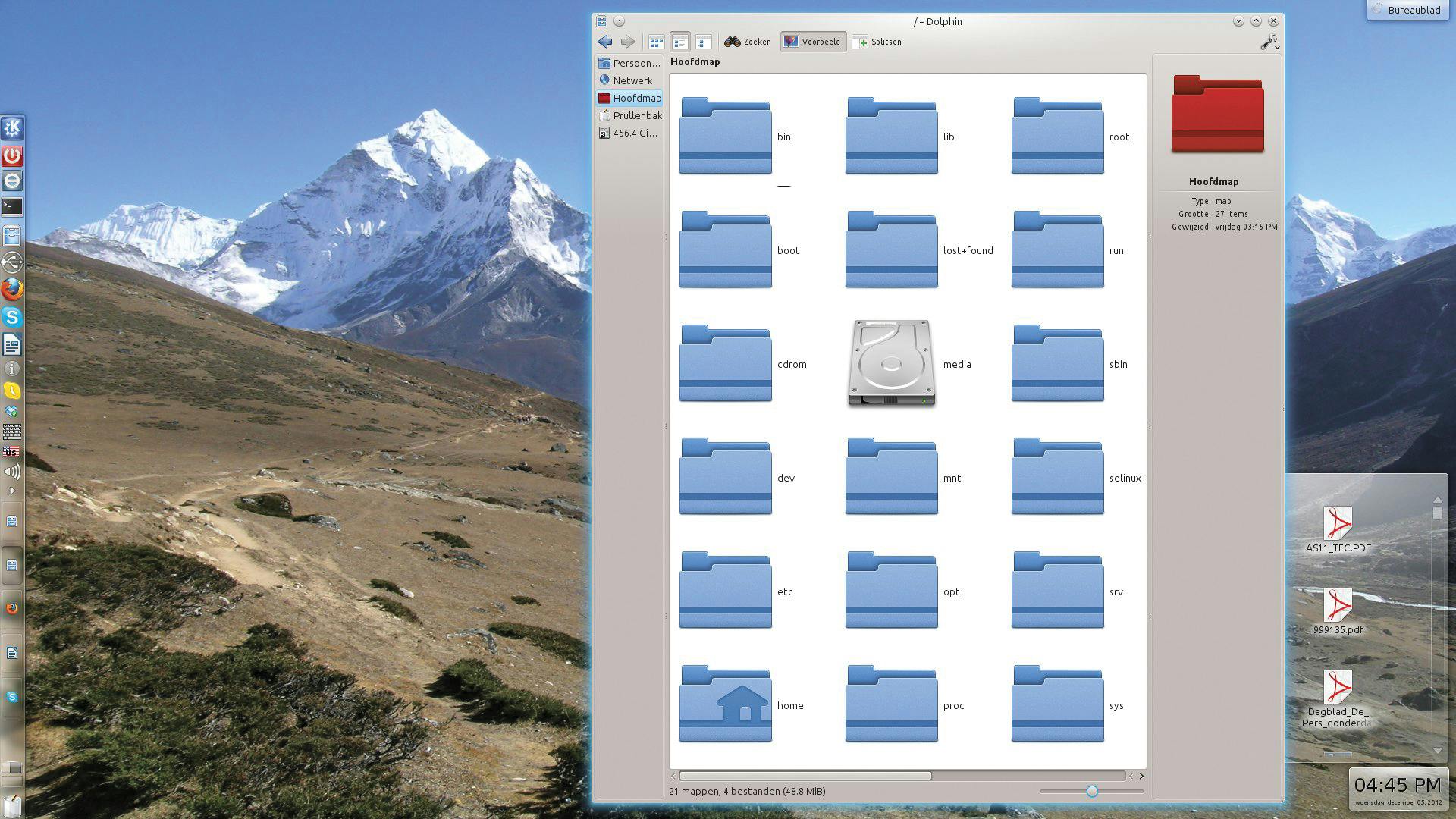 Surfen met een Linux-systeem gaat precies hetzelfde als met Windows. Wel kunt u bij het downloaden van bestanden de eerste keren in de war raken omdat het bestandssysteem van Ubuntu wezenlijk verschilt. Vooral het ontbreken van de vertrouwde schijfstations (C:) is in het begin onwennig. Ook usb-sticks en geheugenkaarten zijn binnen Linux geen fysieke locaties (aan te duiden met een letter) maar mappen. Na aankoppelen duiken ze op binnen de map Media. Tegelijkertijd verschijnt op het bureaublad een melding en wordt de mogelijkheid geboden meteen naar de inhoud toe te gaan. Het is niet moeilijker dan Windows, alleen net even anders.