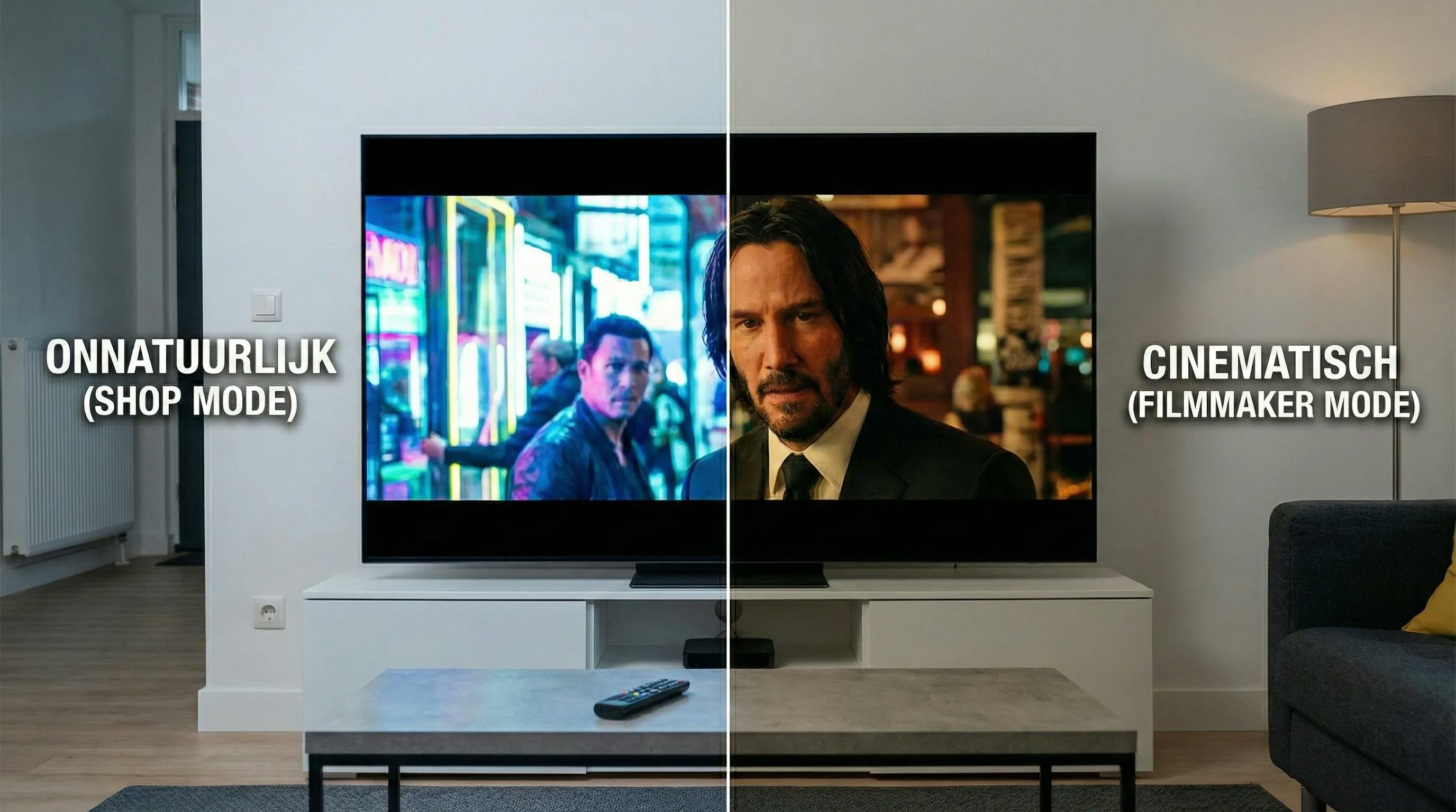 Het goede nieuws is dat je deze 'verbeteringen' gewoon kunt uitzetten. De snelste manier om van het soap opera effect en de neonkleuren af te komen, is door in het menu van je televisie de beeldmodus te wijzigen. Zoek naar een instelling die Film, Movie, Cinema of Bioscoop heet. In deze modus worden de meeste kunstmatige bewerkingen, zoals bewegingsinterpolatie en overdreven kleurversterking, direct uitgeschakeld of geminimaliseerd. Het beeld wordt misschien iets donkerder en warmer van kleur, maar dat is veel dichter bij wat de regisseur voor ogen had.