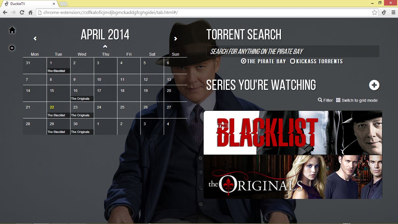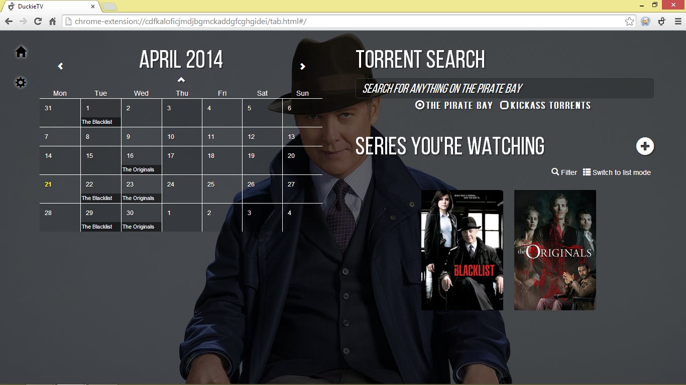 Eerst voeg je al je favoriete series toe, deze komen automatisch in je kalender te staan, als ook in je 'Series you’re watching'. Op deze manier houdt de extensie voor je bij wanneer de eerstvolgende aflevering weer op televisie is. Door in de kalender op de betreffende aflevering te klikken kun je deze downloaden via torrents.