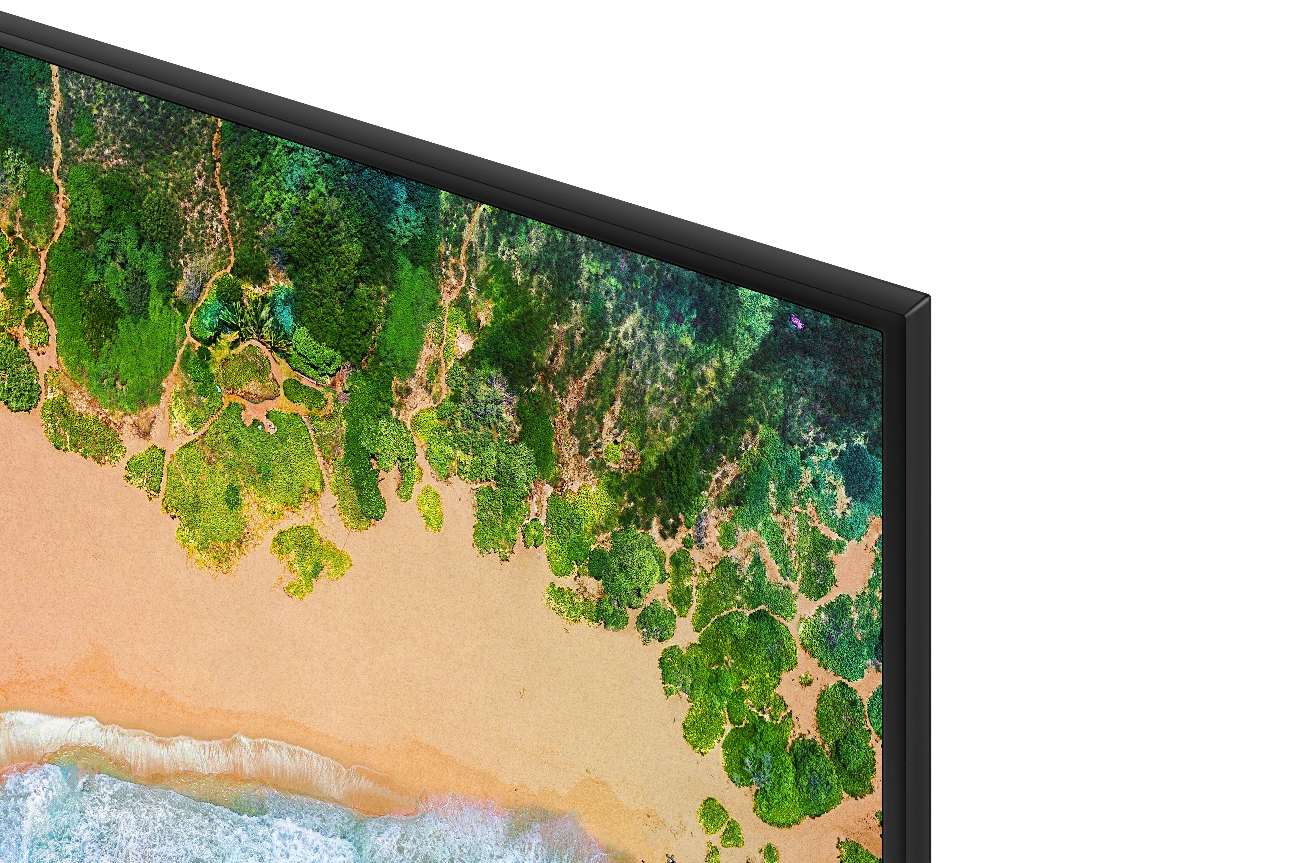 Het scherm gebruikt een edge-led-achtergrondverlichting met local dimming in zes kolommen en een va-paneel. De local dimming heeft beperkt effect omdat Samsung er zo veel mogelijk naar streeft om geen segmentgrenzen of andere negatieve effecten zichtbaar te maken. Toch scoort deze combinatie een erg goed contrast. De film-beeldmodus is goed gekalibreerd. Enkel in de helderste grijstinten zien we een lichte blauwe overtoon, en een wat grillig resultaat. Uitstekende kleurweergave gecombineerd met het diepe contrast leveren erg knappe beelden. De beeldverwerking scoort prima, en je krijgt erg goede bewegingsscherpte. Ook voor hdr scoort de Samsung zeer goed. Hij heeft een maximale helderheid die hem bijna in het premiumsegment plaatst, en een nipt voldoende groot kleurbereik. Het slanke kader verbergt verrassend goede audioprestaties voor deze categorie.