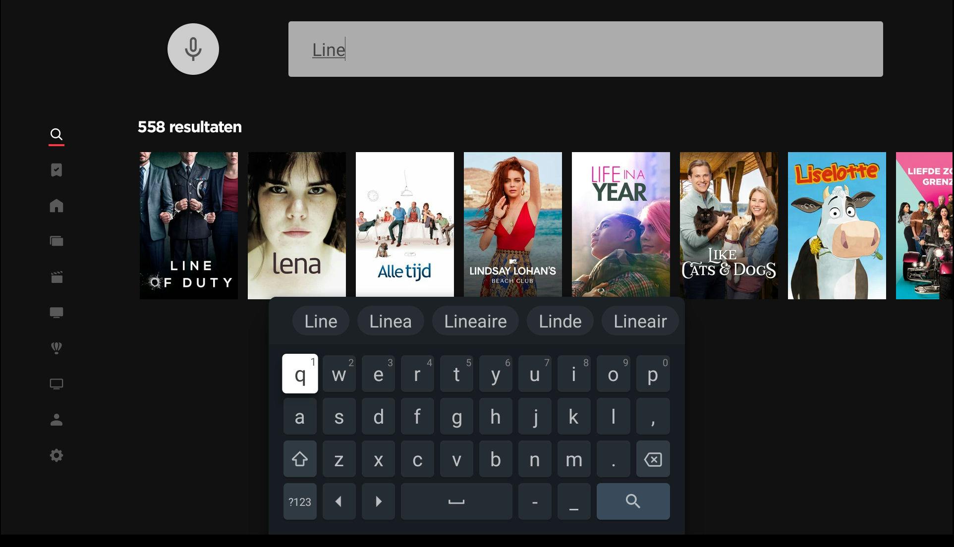 Hoe meer je een exacte titel intypt, hoe minder zoekresultaten er in beeld komen en des te gerichter je dus zoekt. Een nadeel van Videoland is wel dat er 'fuzzy' wordt gezocht. Dat betekent dat de zoekmachine op basis van je input ook suggesties laat zien die lijken op je zoekopdracht, maar het toch net niet zijn. Bijvoorbeeld de zoekopdracht Line of geeft je niet alleen Line of duty, maar ook titels waar het woord Life in voorkomt. Om een exacte titel te zoeken, moet je dus de exacte naam van de tv-serie of film weten, als je niet teveel resultaat-suggesties in beeld wil zien.