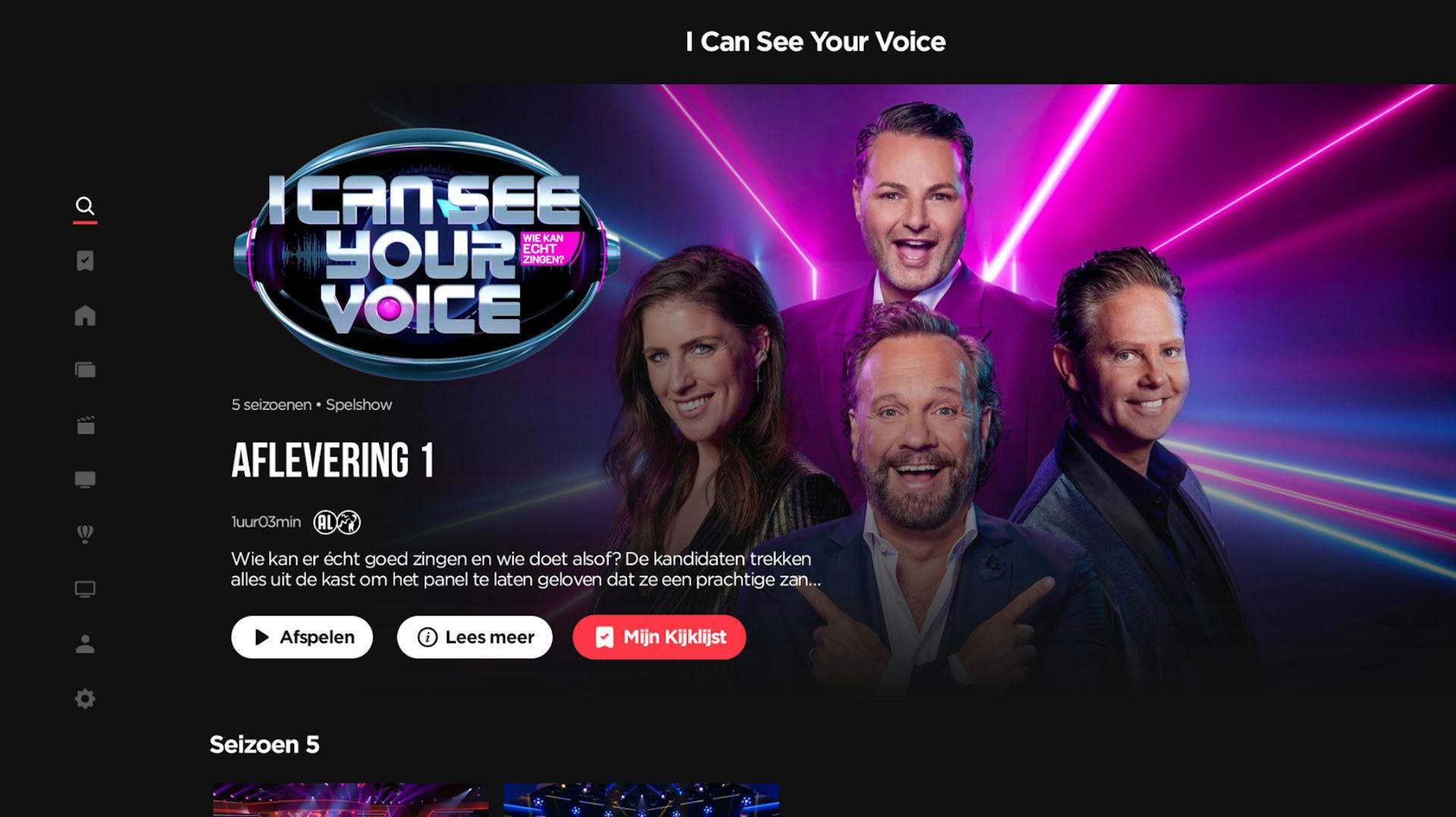 Het onnauwkeurig zoeken daargelaten, je kunt alle resultaten afzonderlijk opslaan in een persoonlijke kijklijst. Dat geldt natuurlijk ook voor alle series en films die je in het hoofdscherm ziet. Navigeer met je afstandsbediening naar de serie of film die je wil opslaan, en selecteer de optie MIjn Kijklijst. Enig nadeel: het toevoegen aan een kijklijst werkt alleen voor een film of een enkele aflevering uit een serie. Je kunt niet een hele serie toevoegen aan je kijklijst.