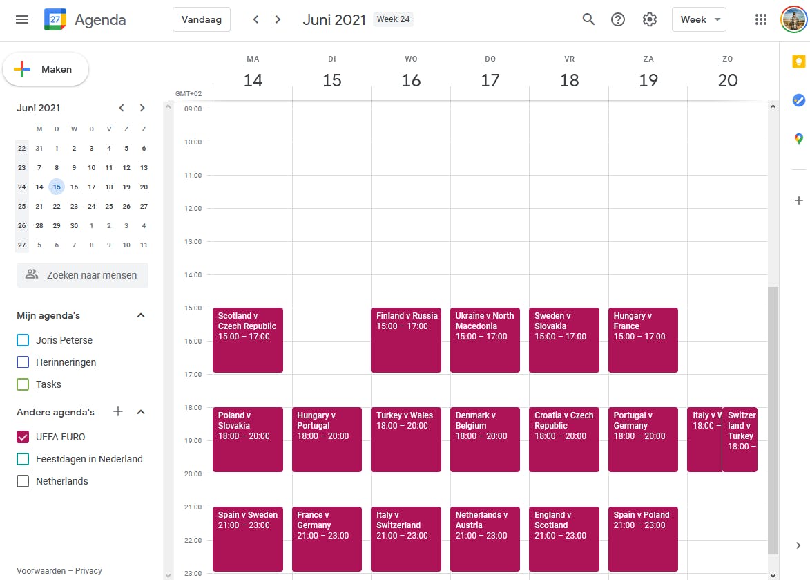 Dat is allemaal prettige informatie voor de voetbalfan. Maar als je het EK écht goed wilt volgen, is het prettig om het speelschema in de agenda te hebben. Gelukkig zijn er manieren om dit speelschema in de digitale agenda te importeren. Daarbij maakt het niet uit of je een kalender gebruikt van Google, Microsoft (Outlook) of Apple.