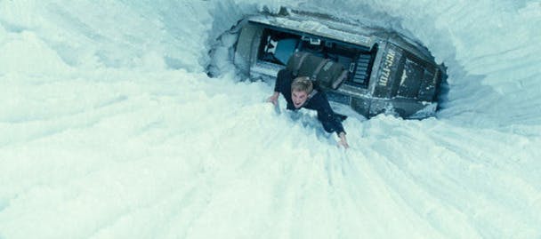 Het contrast aanpassen: De contrastbediening is het tegenovergestelde van die voor de helderheid, aangezien deze het witniveau in het beeld aanpast. Staat het contrast te laag ingesteld, dan lijkt het beeld vaal en saai. Stel je het contrast te hoog in, dan verliezen wolken al hun definitie en zien ze eruit als witte vlekken, en witte kleding of sneeuwscènes missen detail. Probeer een scène met sneeuw, zoals eentje op Hoth in The Empire Strikes Back of in de nieuwe Star Trek van J.J. Abrams uit 2009. Begin met het contrast op de maximale instelling, en ga omlaag totdat je de details in de sneeuw kunt zien.