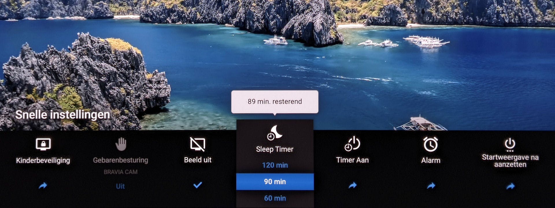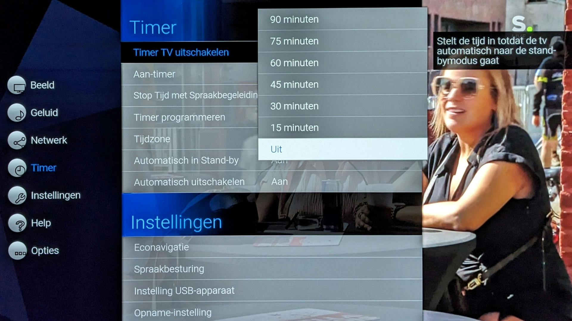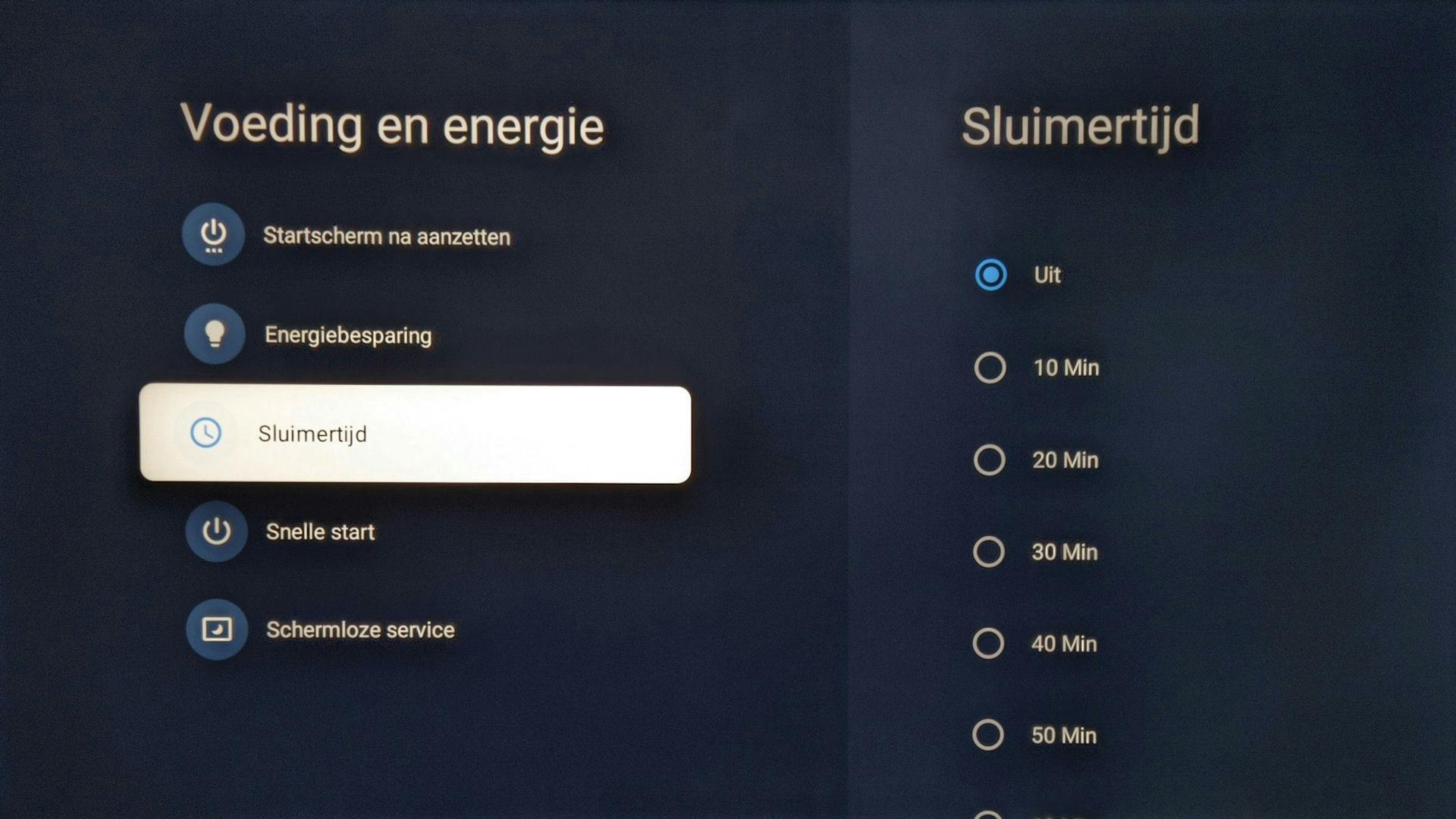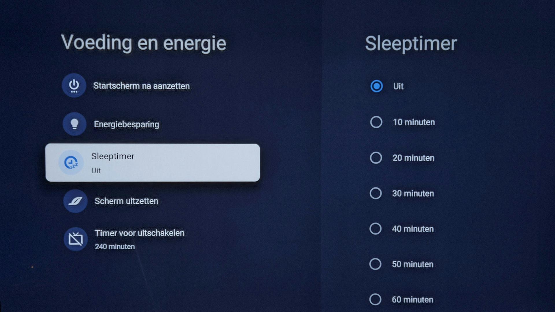 Zodra je een van de opties selecteert, gaat de timer lopen en wordt er afgeteld. Wanneer de timer de laatste twee minuten bereikt, krijg je een melding of je de timer eventueel wilt stoppen. Natuurlijk kun je hier ook de timer helemaal uitschakelen. In dat geval selecteer je de optie Uit. Tip: je kun de slaaptimer ook vinden in de algemene instellingen: Navigeer dan naar Systeem > Voeding en energie > Sleeptimer.