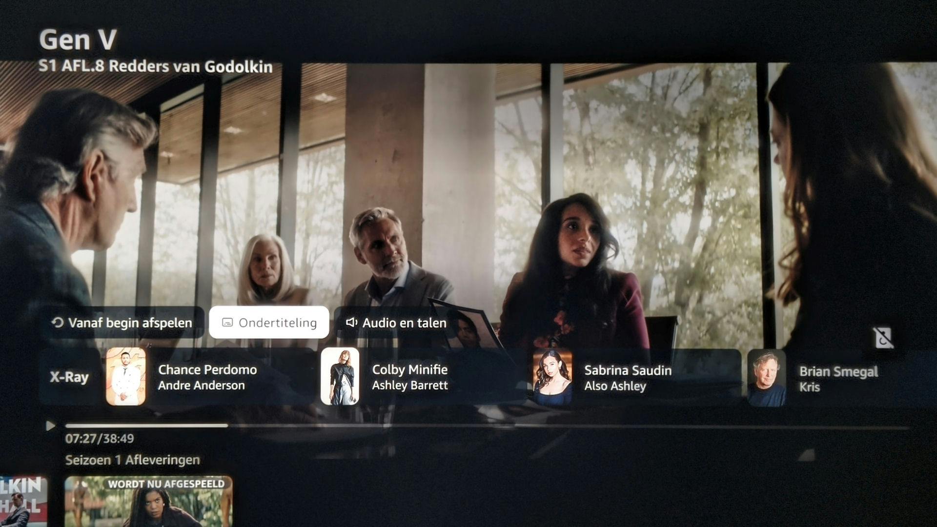 Amazon Prime Video biedt content in meerdere talen, dus is het prettig dat je de ondertitels bij series en films in Prime Video kunt instellen. Je pauzeert eerst de video voordat je een aanpassing kunt doen. Pauzeer je het beeld in Prime Video, dan zie je meteen welke acteurs er in beeld zijn via de functie X-Ray. Daarboven zie je de pictogrammen voor Ondertiteling en Audio en talen.