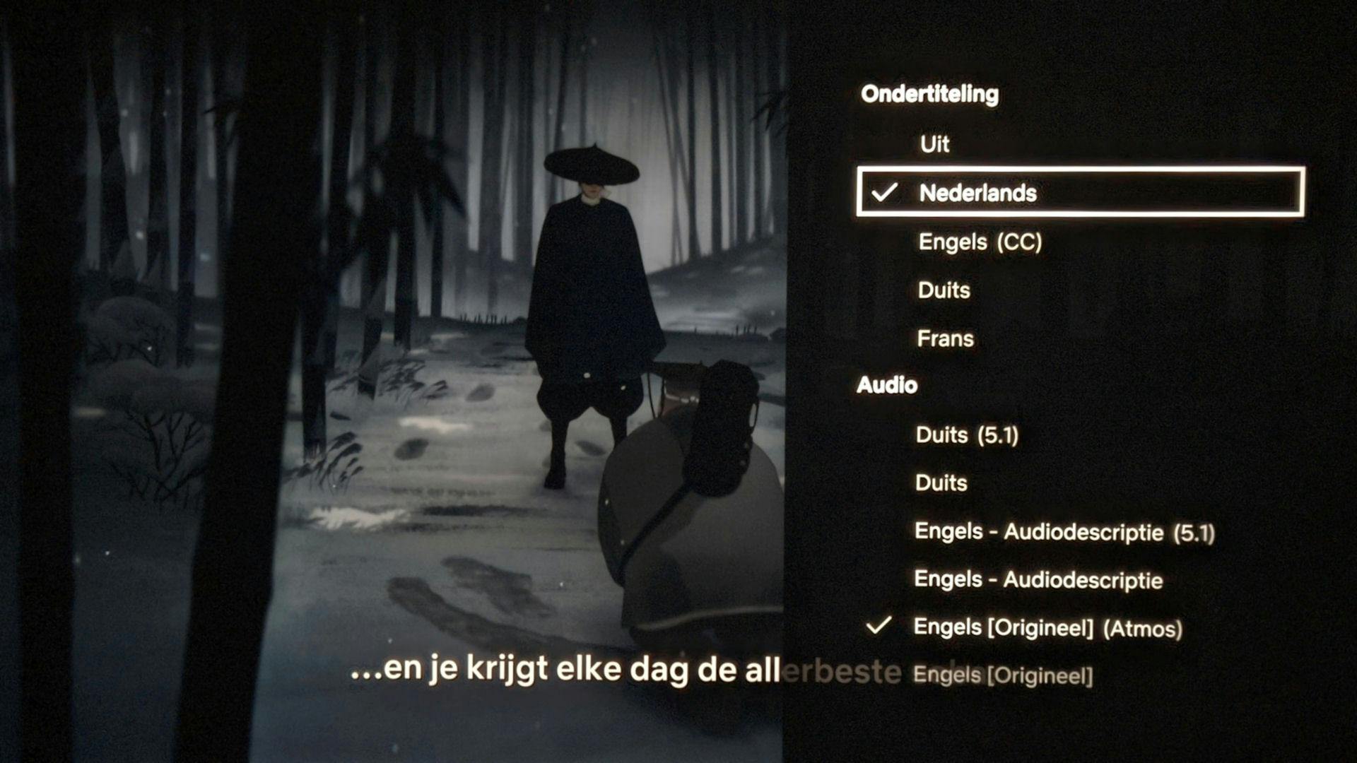 Er verschijnt een pop-up waarin je nu de ondertitels kunt aanpassen. Let wel: de keuze is erg beperkt. Qua taal wordt meestal alleen de taal aangeboden van de regio waarin je je bevindt, en soms ook de taal van de audio zelf, bijvoorbeeld Engels, maar worden andere talen niet aangeboden.